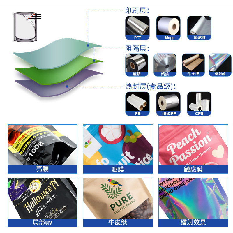 Сумки из алюминиевой фольги по индивидуальному заказу; Индивидуальная сумка для маски для лица; Индивидуальная сумка с носиком; Индивидуальные самостоящие сумки с застежкой-молнией; Индивидуальная сумка на молнии; Индивидуальный трехсторонний герметичный пакет; Пакеты из крафт-бумаги по индивидуальному заказу; Сумка для риса по индивидуальному заказу; Индивидуальная сумка для органового клапана; Индивидуальная автоматическая упаковочная пленка