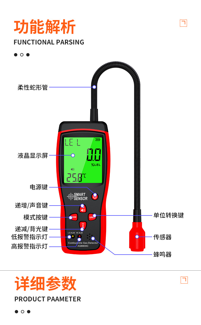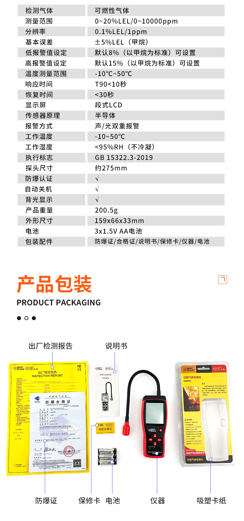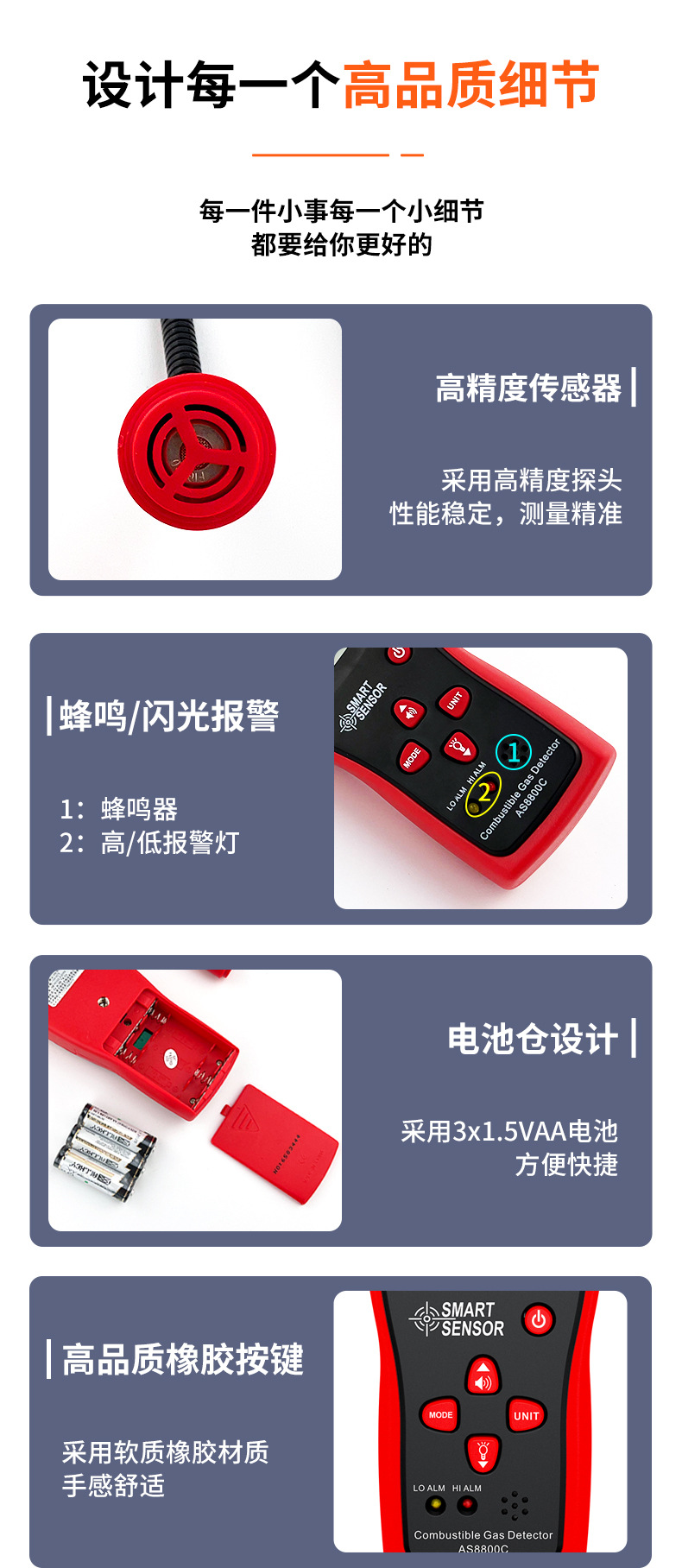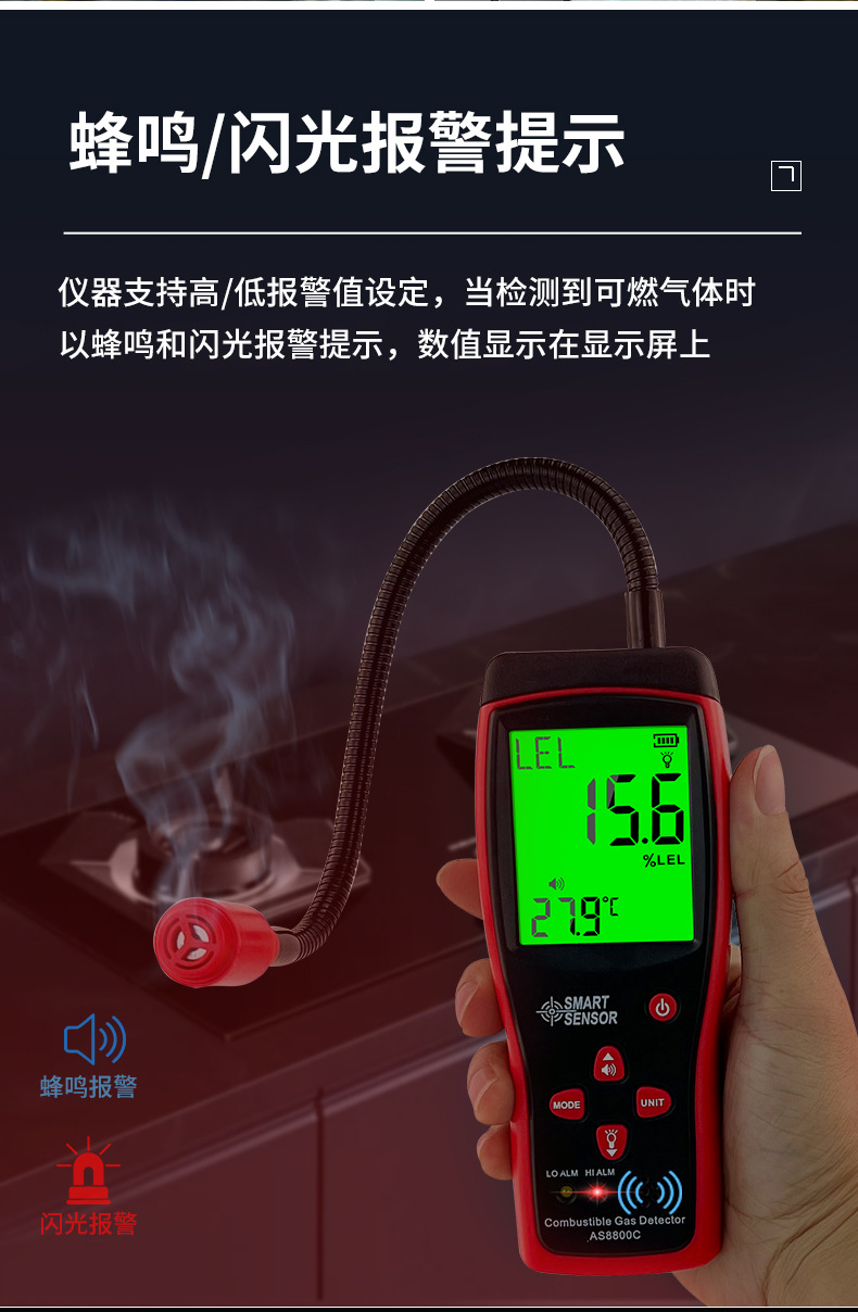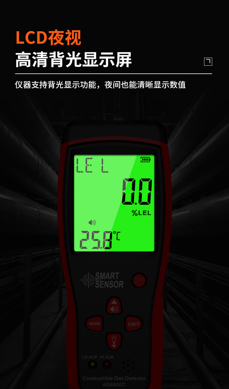 Химма AS8800C Цифровые детекторы газа Портативный газовый газ биогаз детектор утечки газа