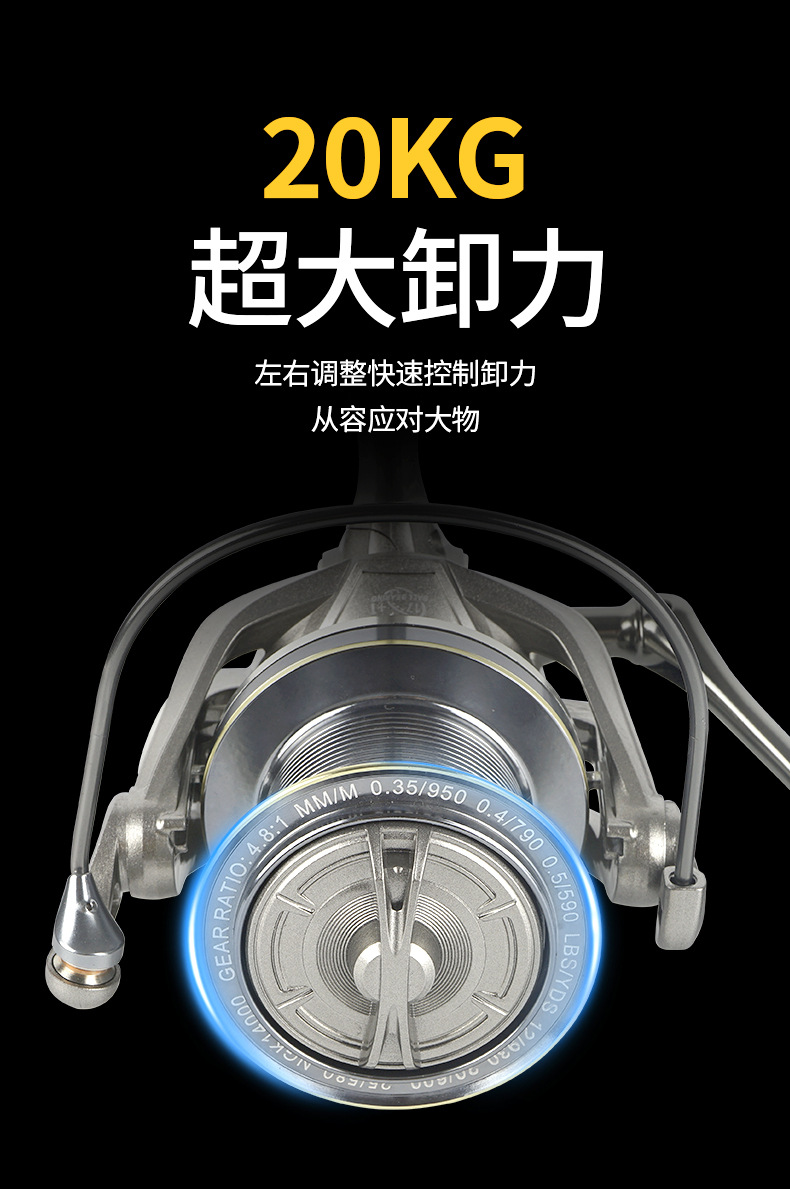 2、采用20KG超大卸力,左右调整快速控制卸力,从容应对大物。