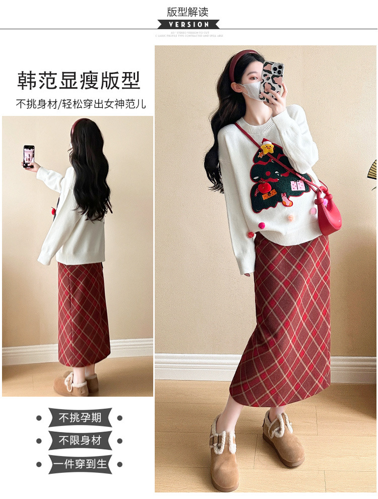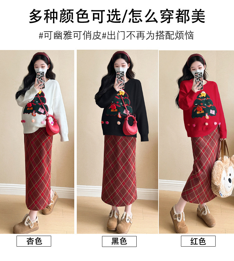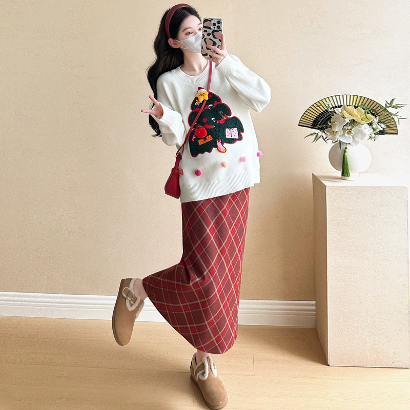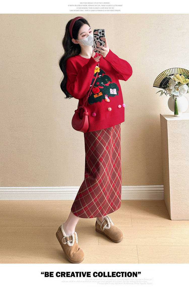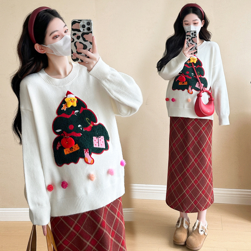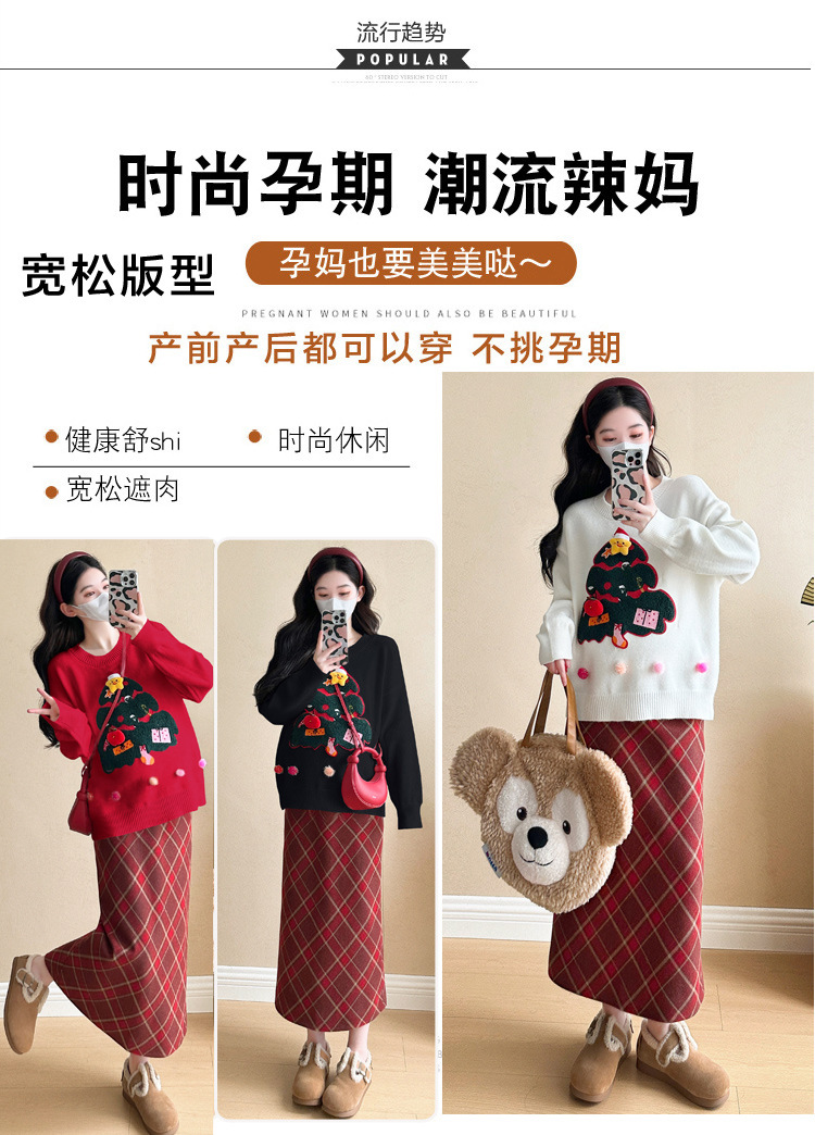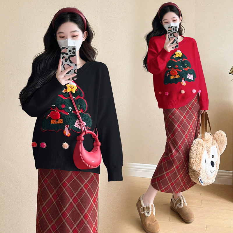 Одежда для беременных 2024 осень и зима новая сетка красная сладкая мода рождественская елка минус возраст Новый год свитер топ прилив