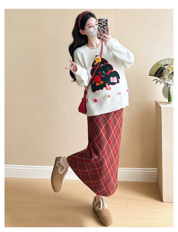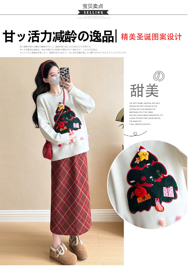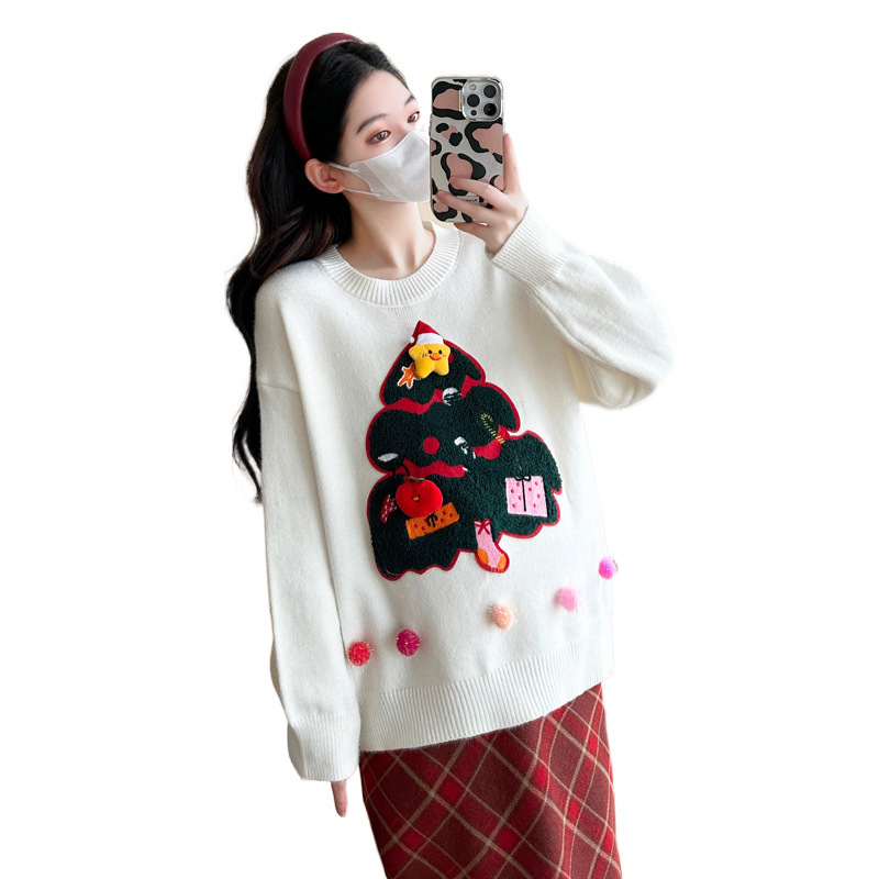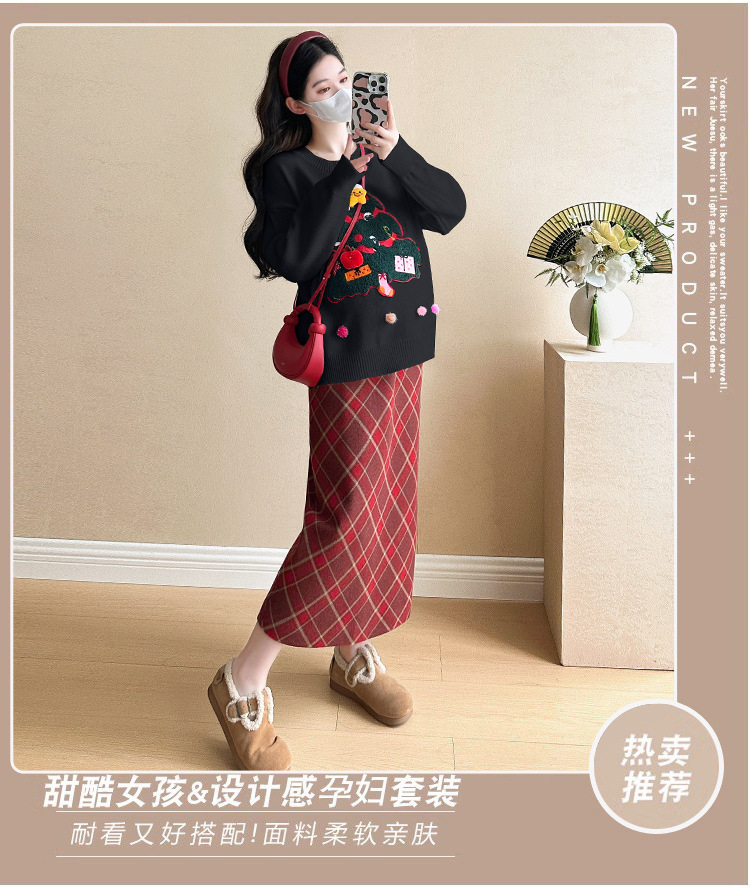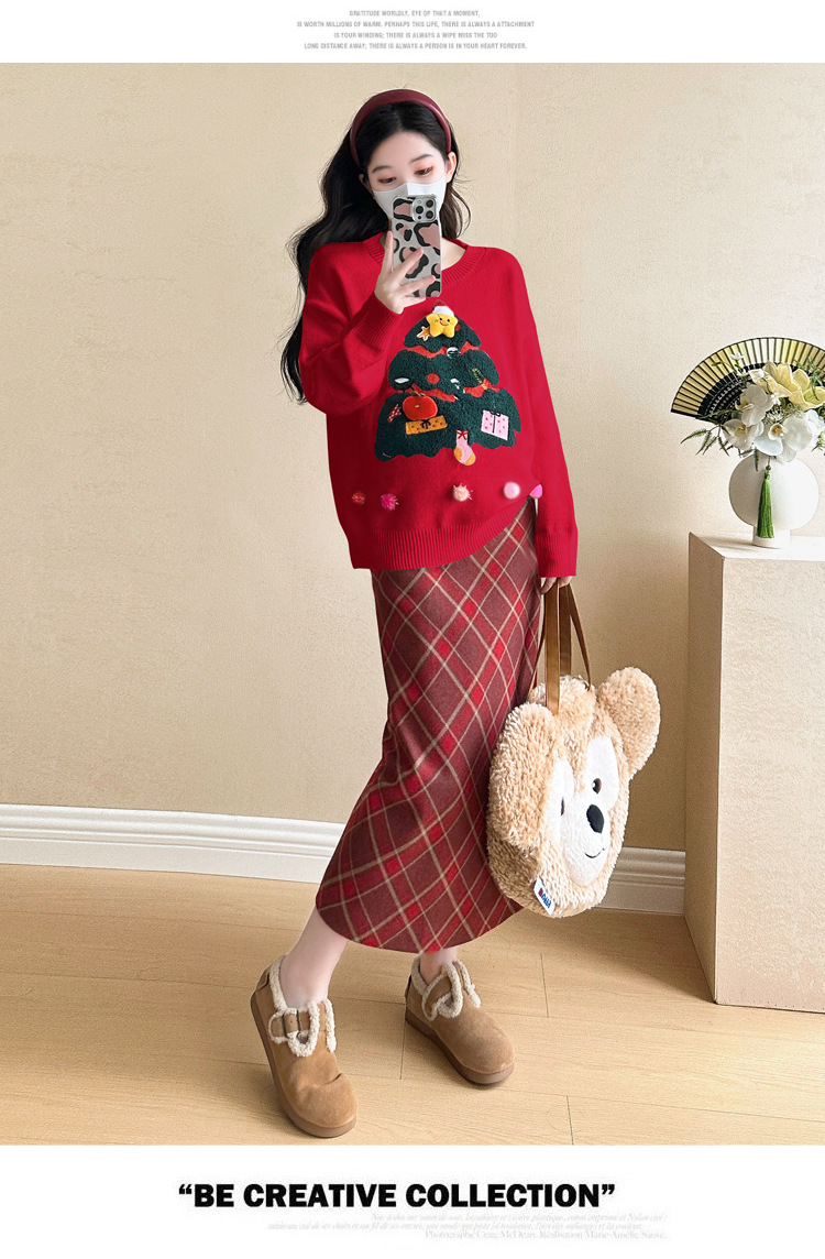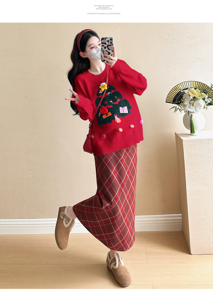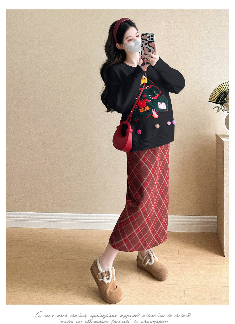 Одежда для беременных 2024 осень и зима новая сетка красная сладкая мода рождественская елка минус возраст Новый год свитер топ прилив