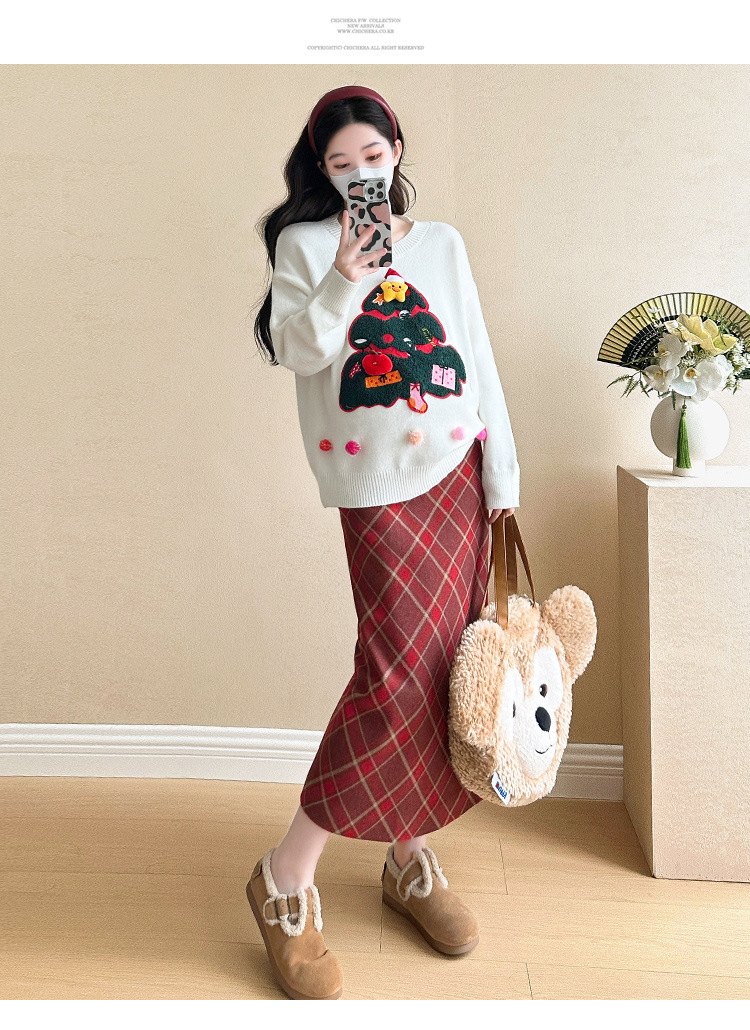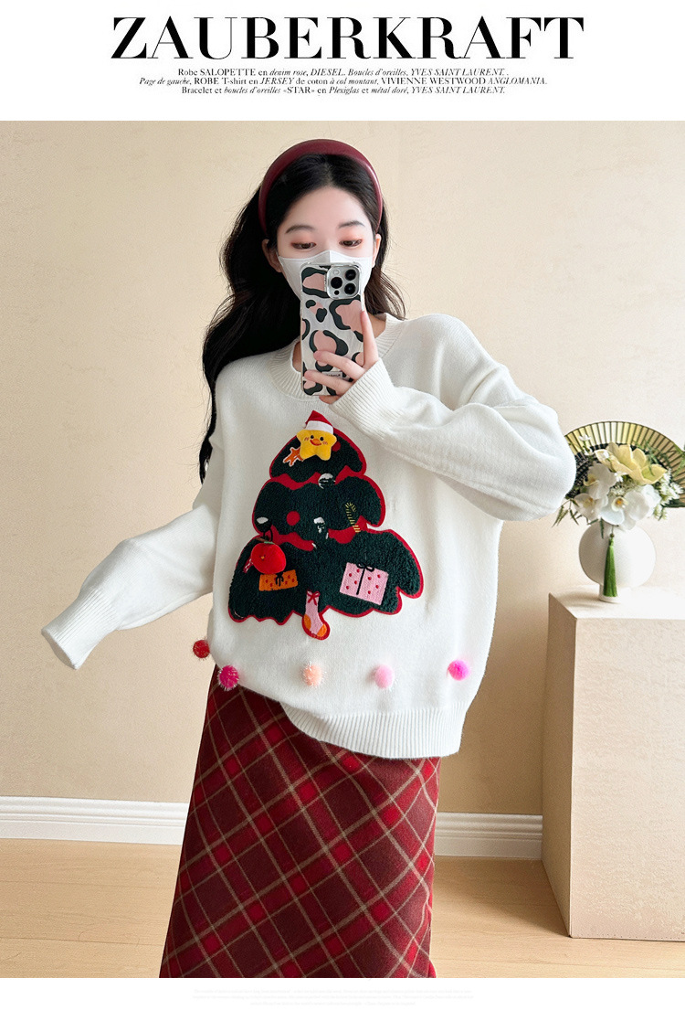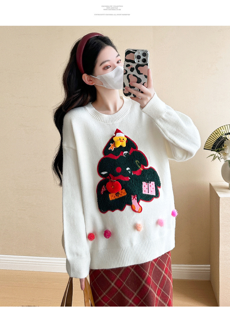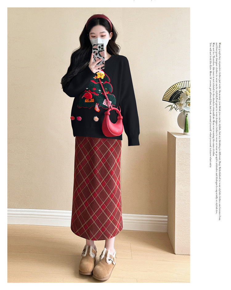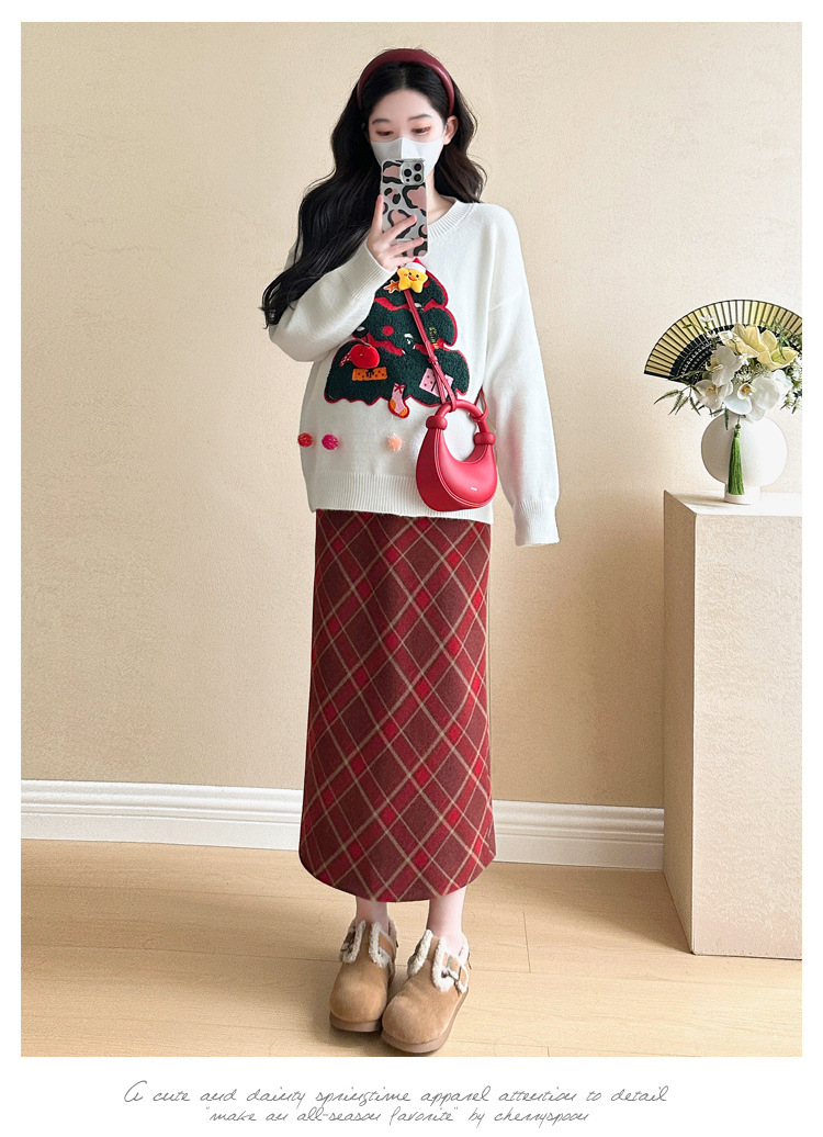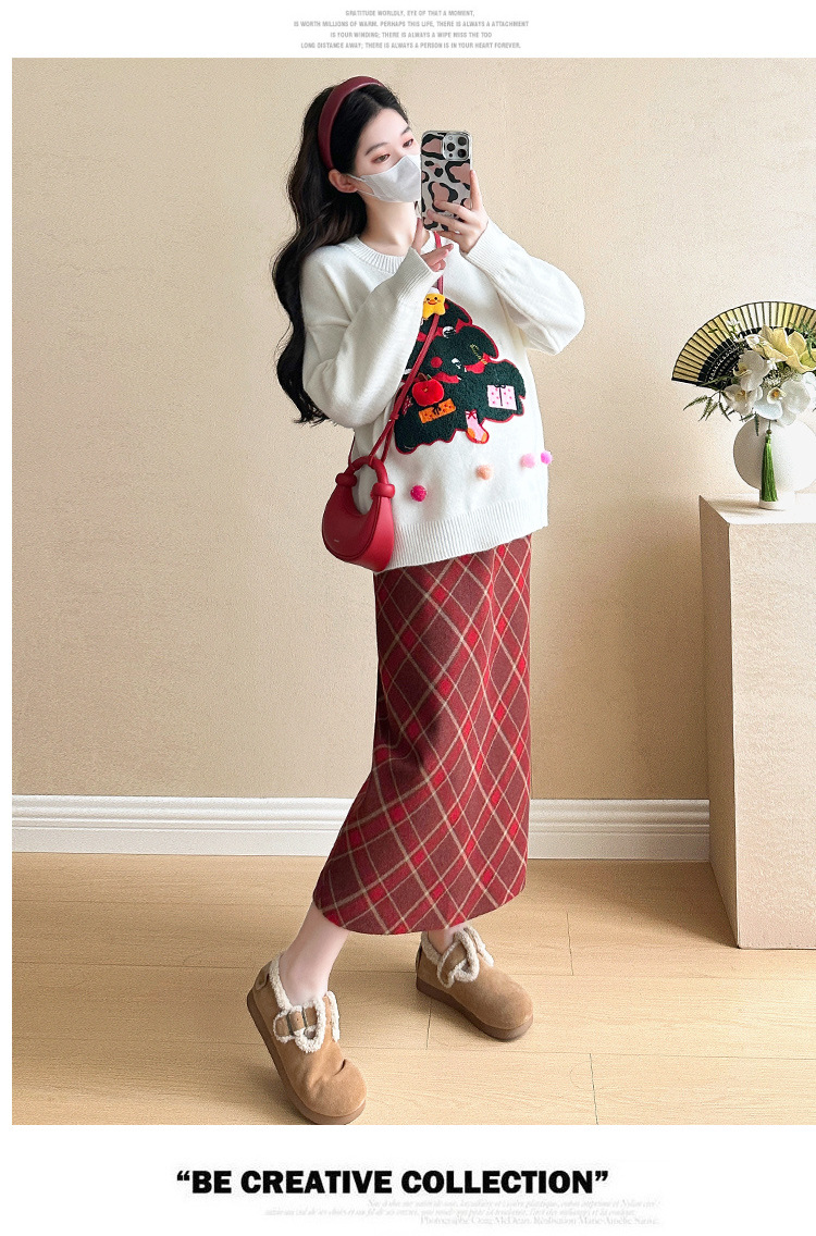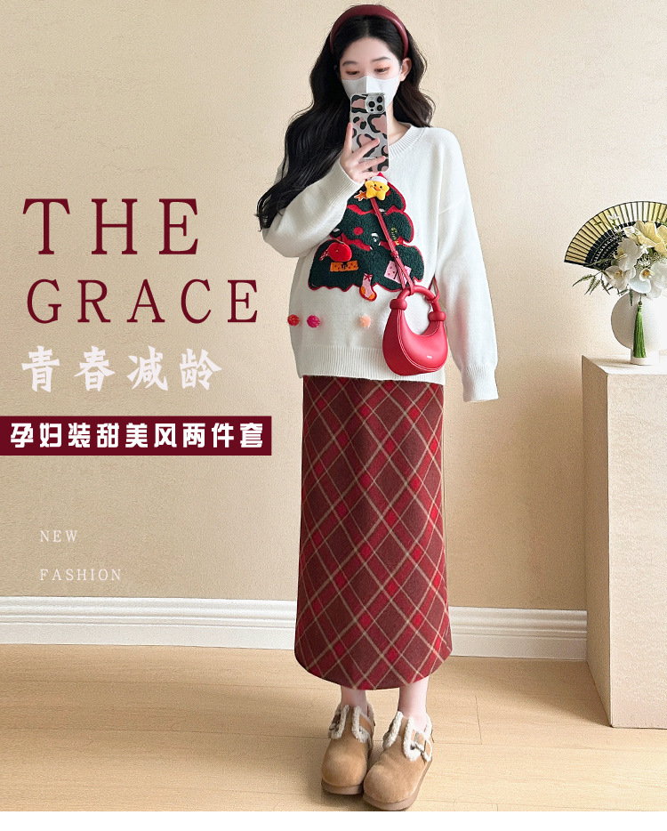 Одежда для беременных 2024 осень и зима новая сетка красная сладкая мода рождественская елка минус возраст Новый год свитер топ прилив