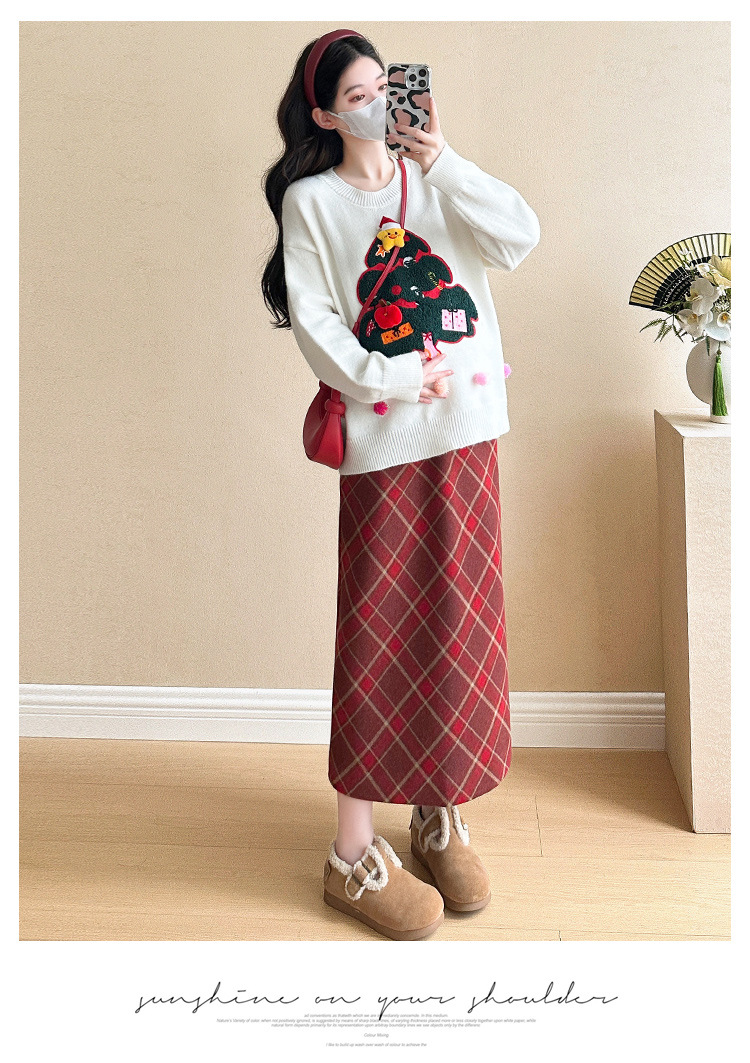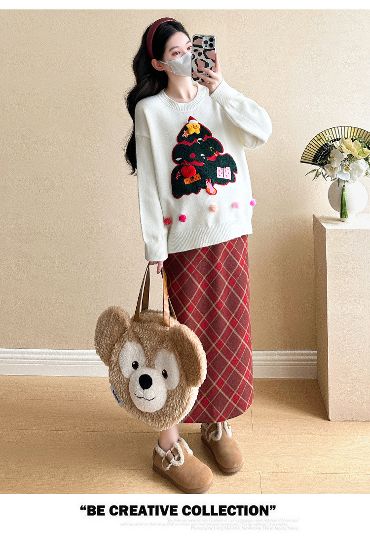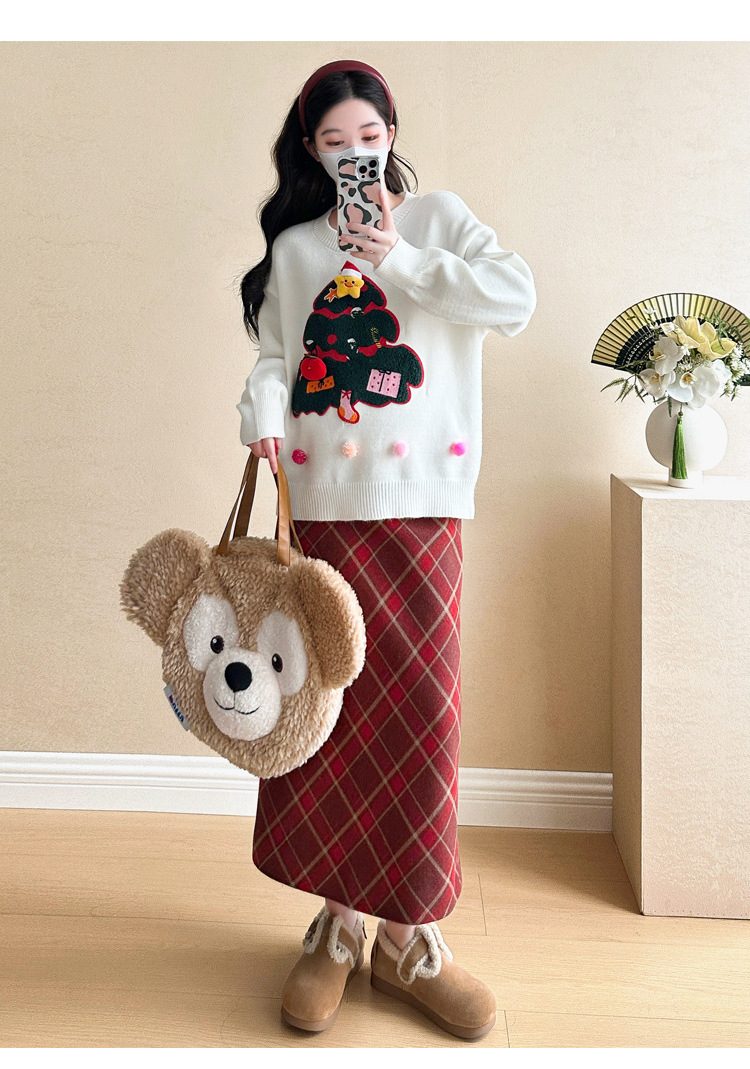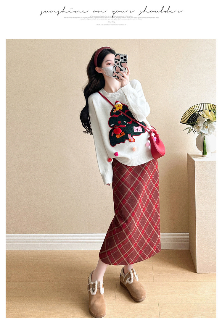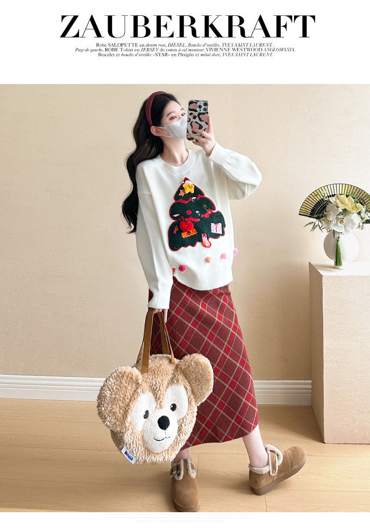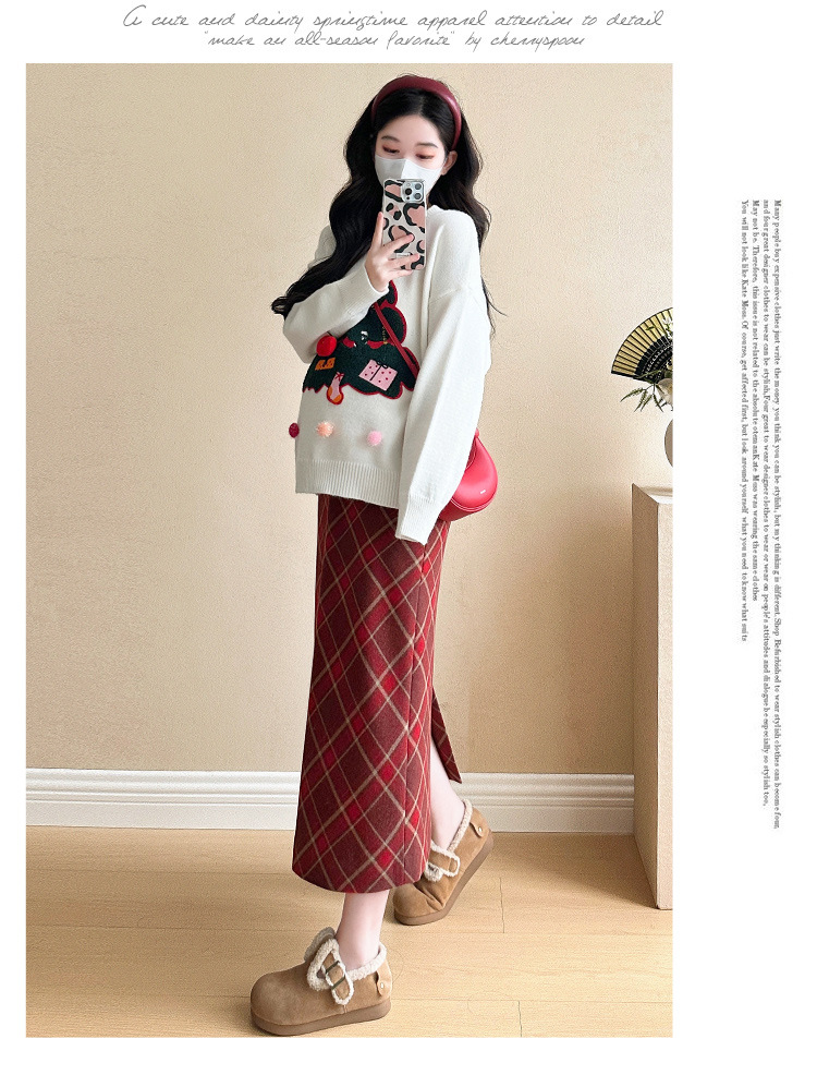 Одежда для беременных 2024 осень и зима новая сетка красная сладкая мода рождественская елка минус возраст Новый год свитер топ прилив