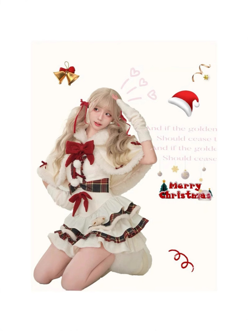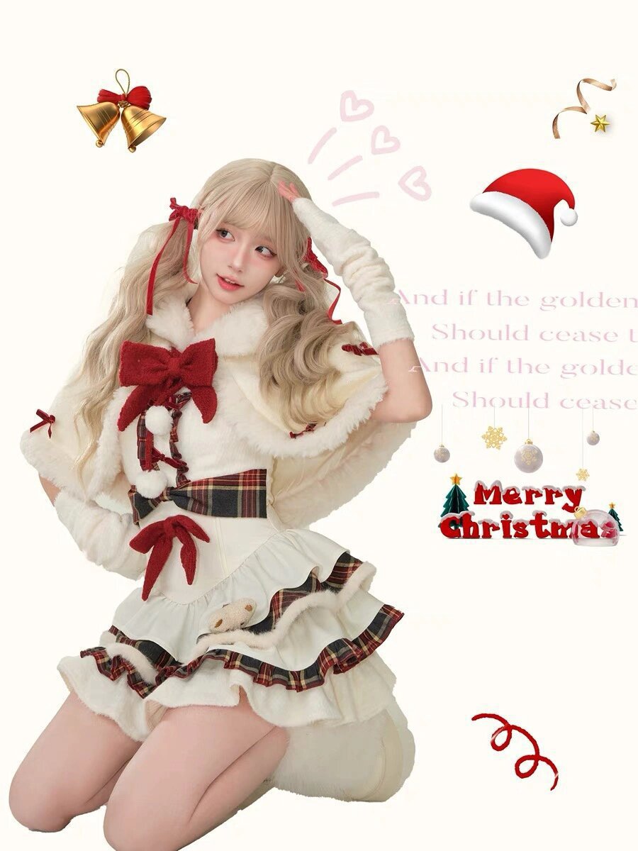 Сладкая и пряная милая девушка ветер Лолита Рождество Новый год Ограниченная боковая куртка плаща юбка с бантом
