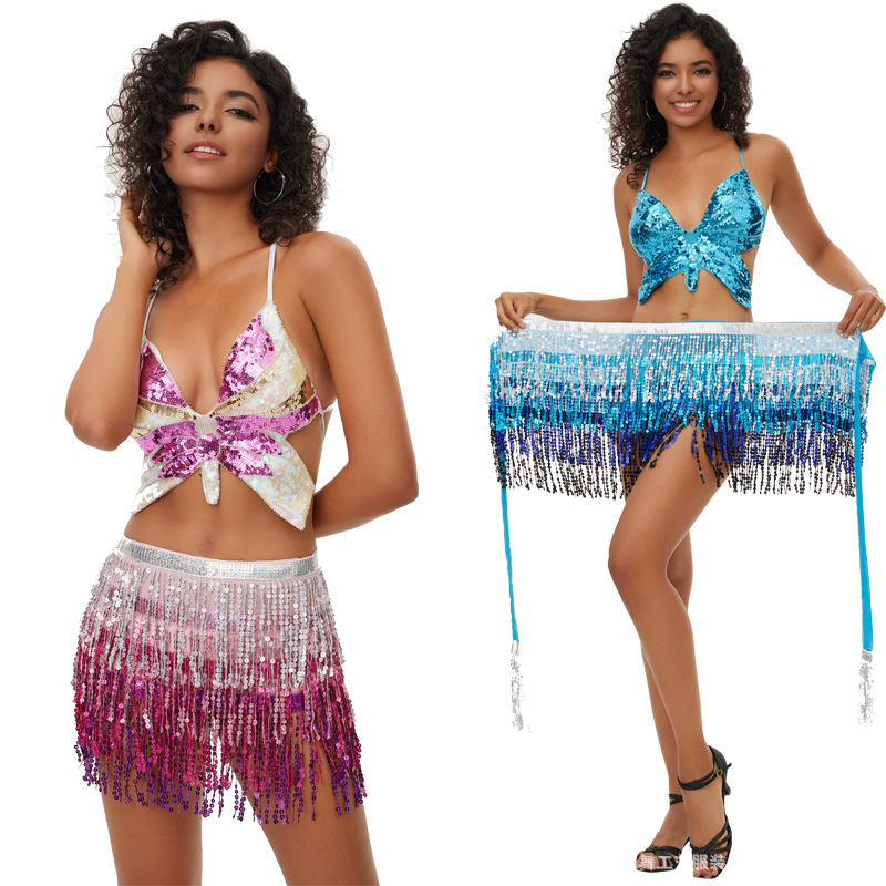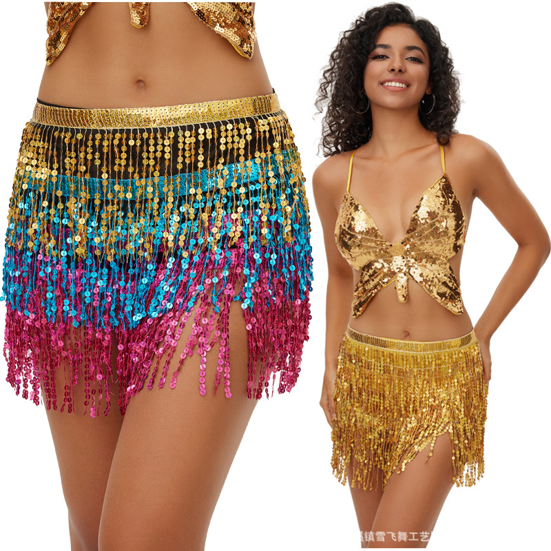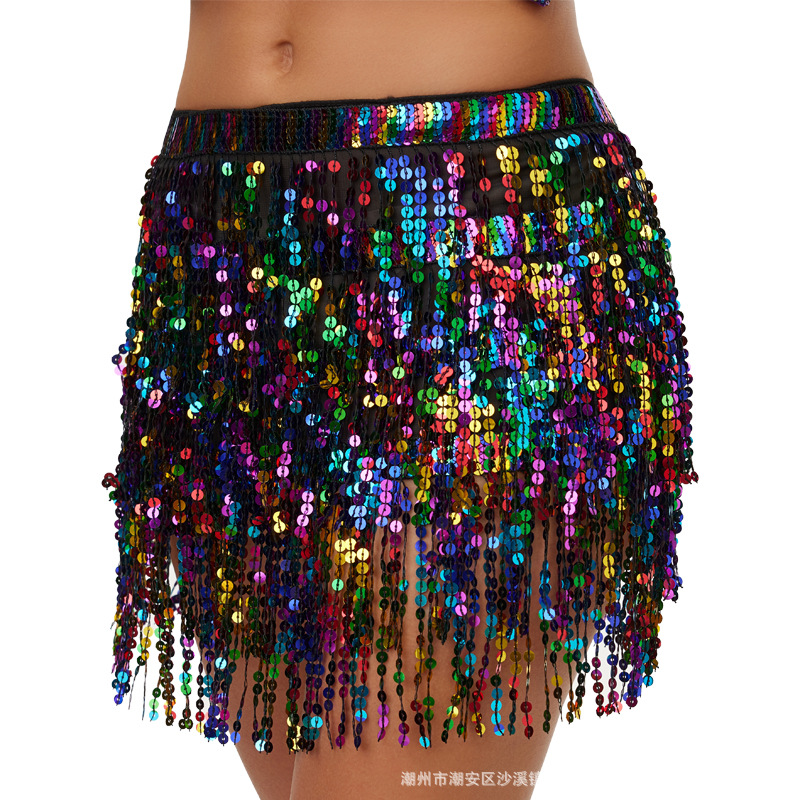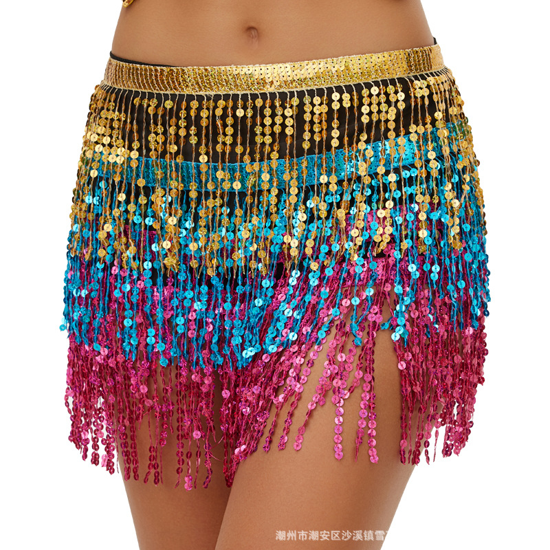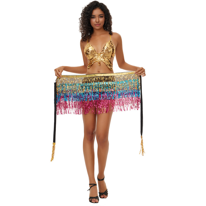 Хэллоуин новый танец живота бисер талия цепочка 4 слоя бисер блестки танцевальное представление тазобедренный шарф с кисточкой пояс