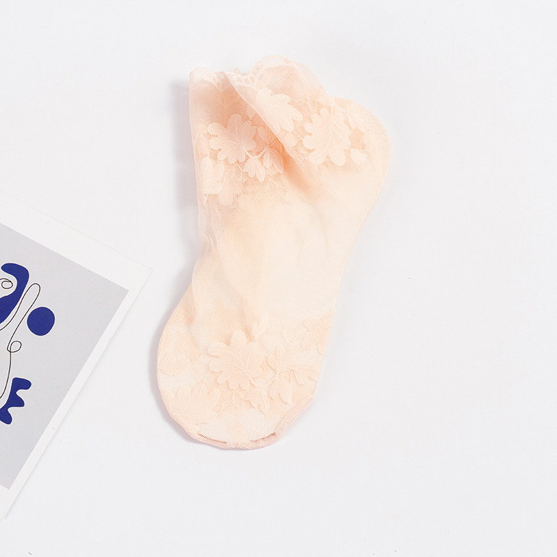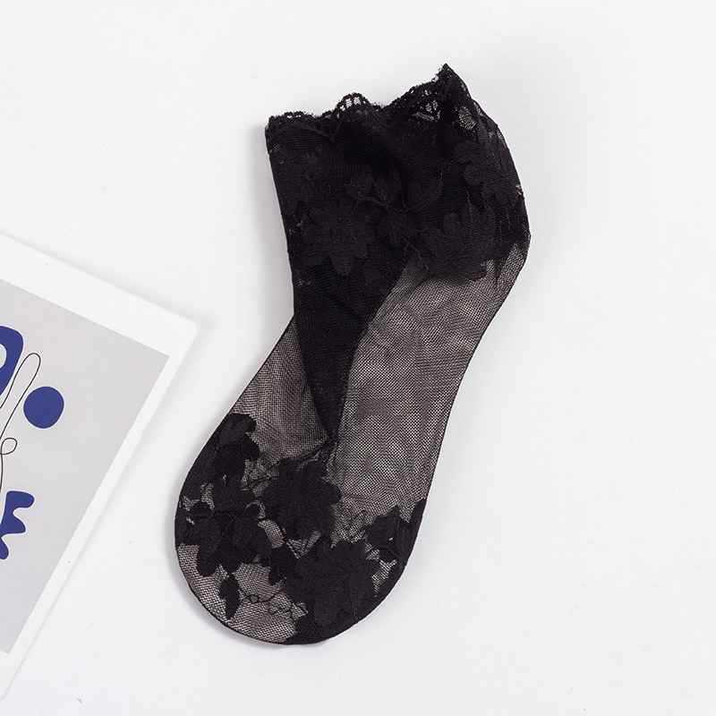Летние тонкие носки до середины икры с кружевной отделкой в виде листьев, женские короткие носки с хлопковой подошвой, дышащие сетчатые носки с противоскользящим покрытием.