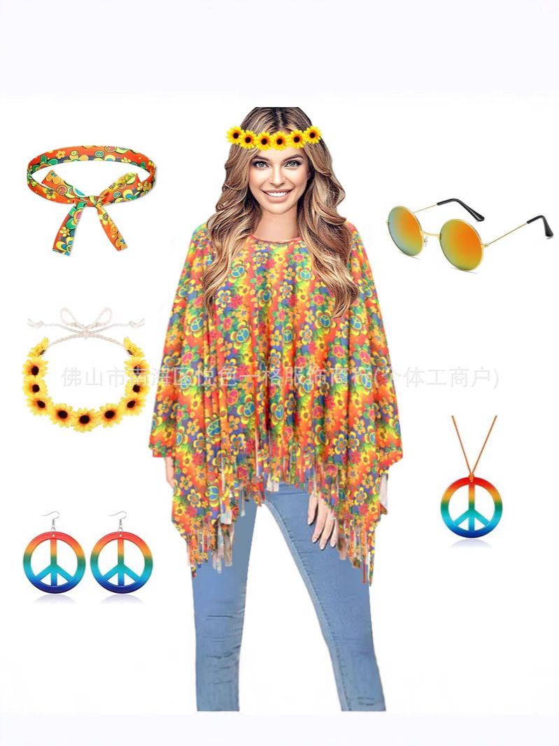 2024 Amazon Женский Хэллоуин 6070-е Диско Костюм Диско Плащ для взрослых Диско