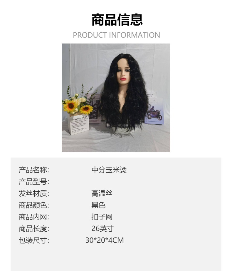 Длинный кудрявый синтетический парик с разрезом по центру, черное синтетическое волокно, устойчивое к высоким температурам, пышный и естественно выглядящий парик для трансграничной торговли в Европе, Америке и Африке.