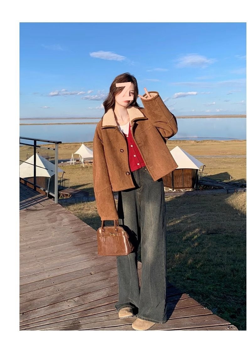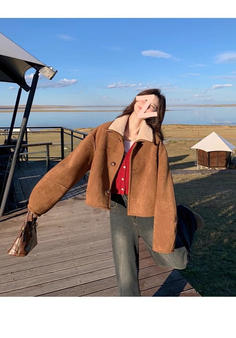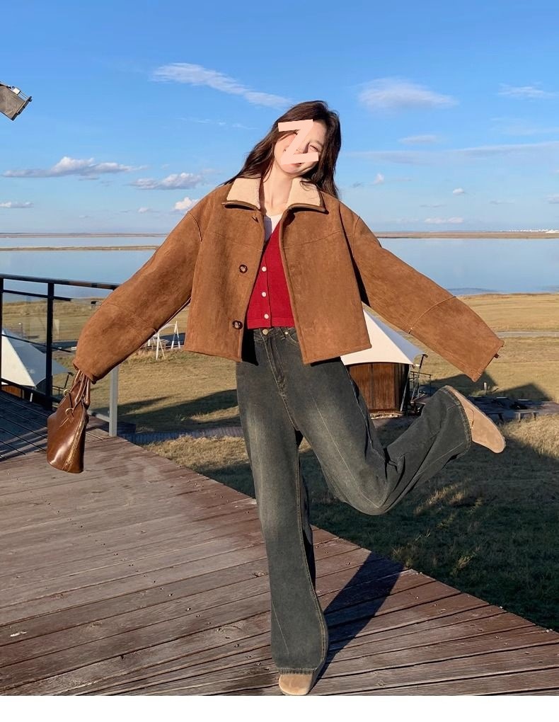Новая осенне-зимняя верхняя одежда из овечьей шерсти для женщин с мехом, интегрированная двусторонняя одежда для маленьких людей, утолщенный топ из искусственной замши для женщин