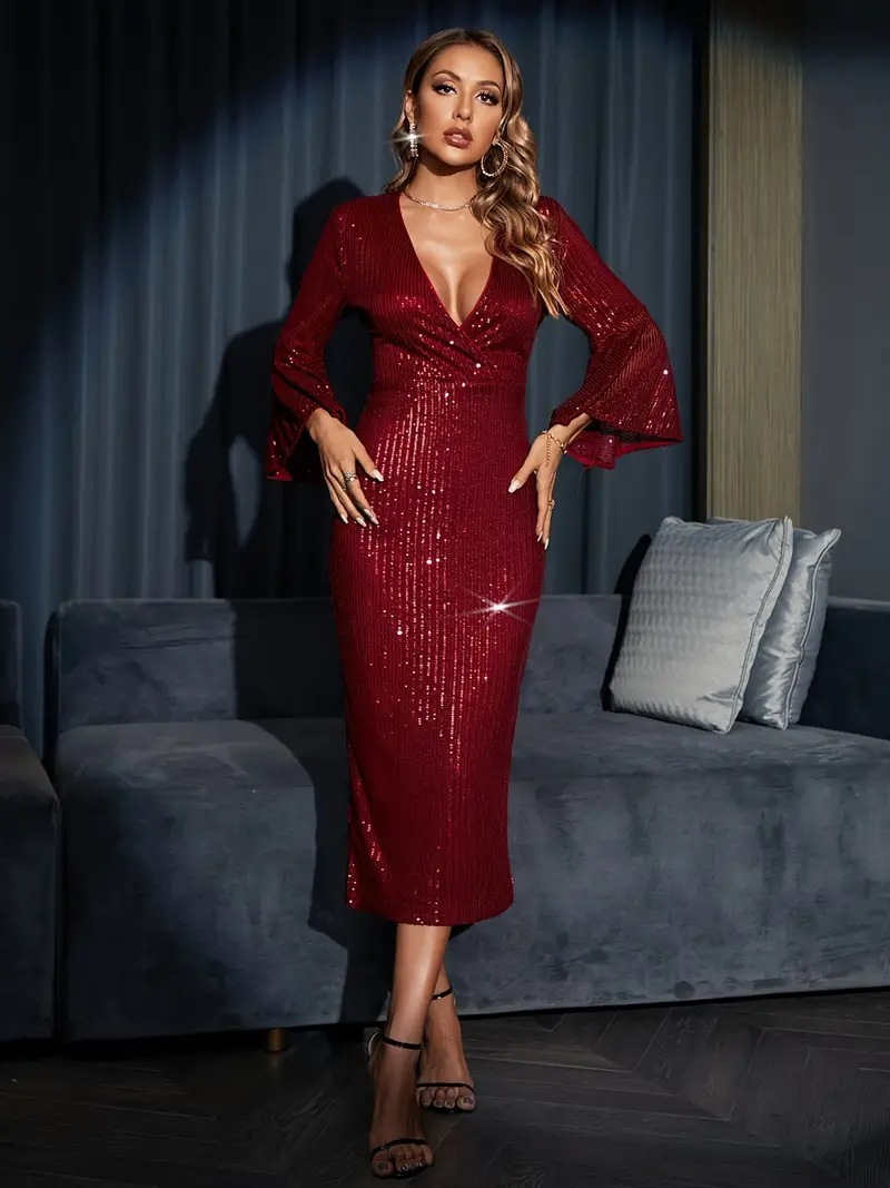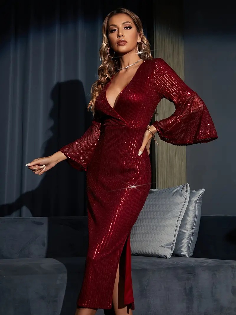 Новинка 2024: Сексуальное вечернее платье с пайетками в европейском и американском стиле для трансграничной торговли, индивидуальный пошив, для ярких девушек