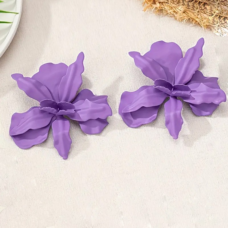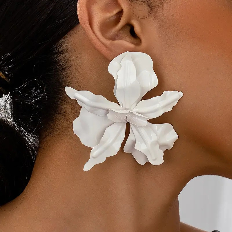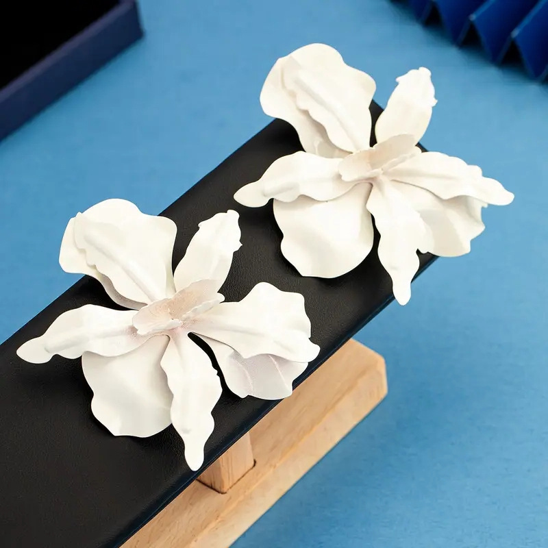 Европейские и американские модные серьги-гвоздики с геометрическим принтом, складками и лакированными цветочными элементами, подходящие для уличных вечеринок и различных мероприятий весной и летом.