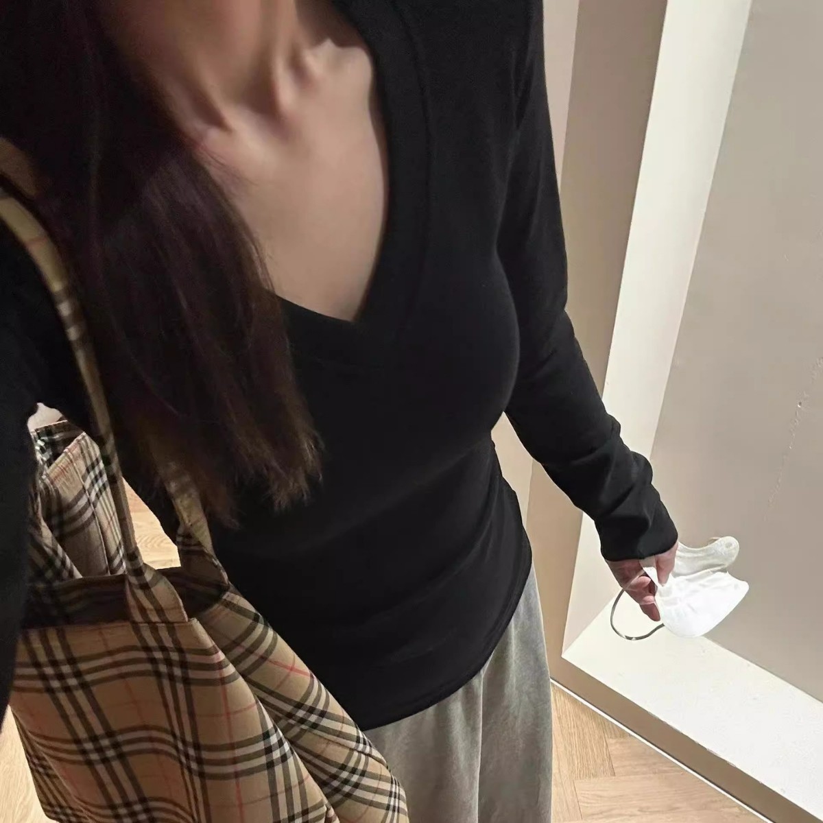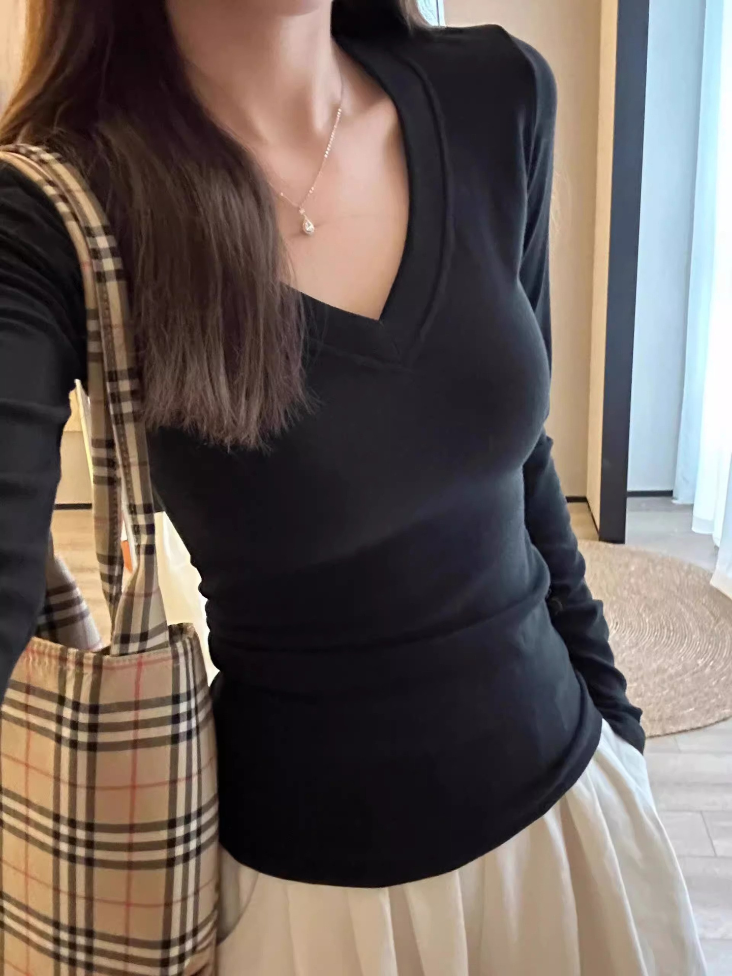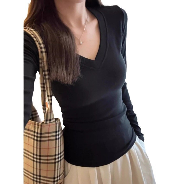 Футболка De Rong с V-образным вырезом и длинными рукавами для женщин, осенне-зимний базовый слой, облегающий крой, на флисовой подкладке, утепленный топ для сохранения тепла.