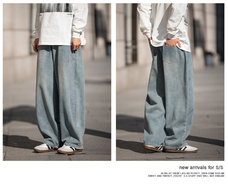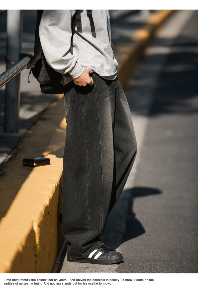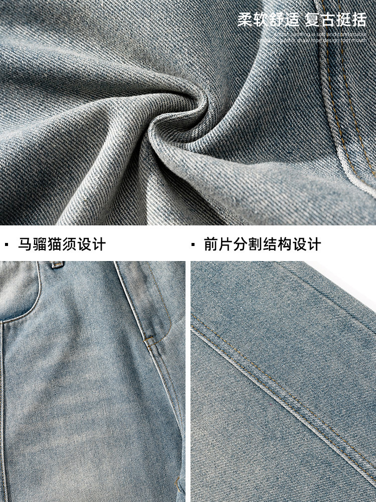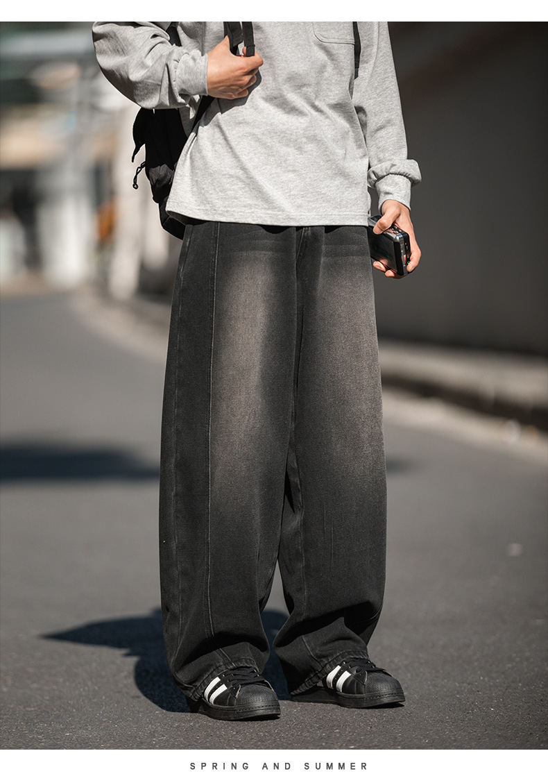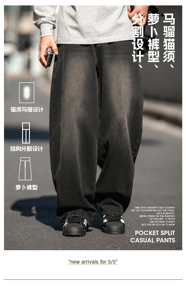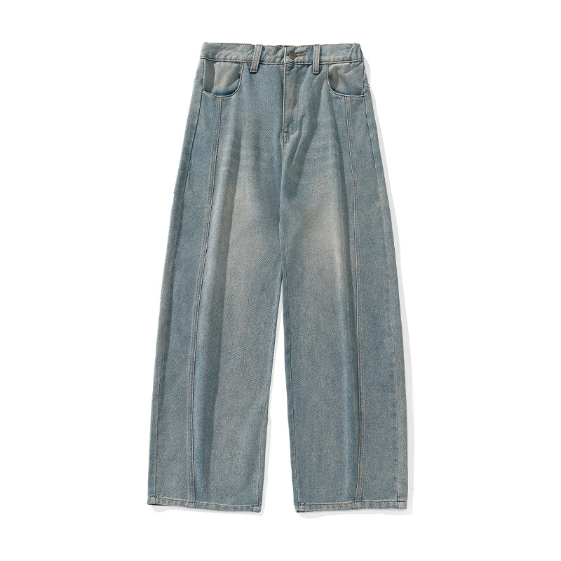 Старая стирка джинсов мужской весенний новый дизайн сшивания ятаган брюки ретро свободные силуэты длинные брюки