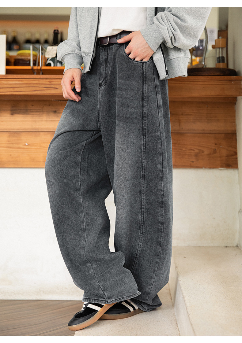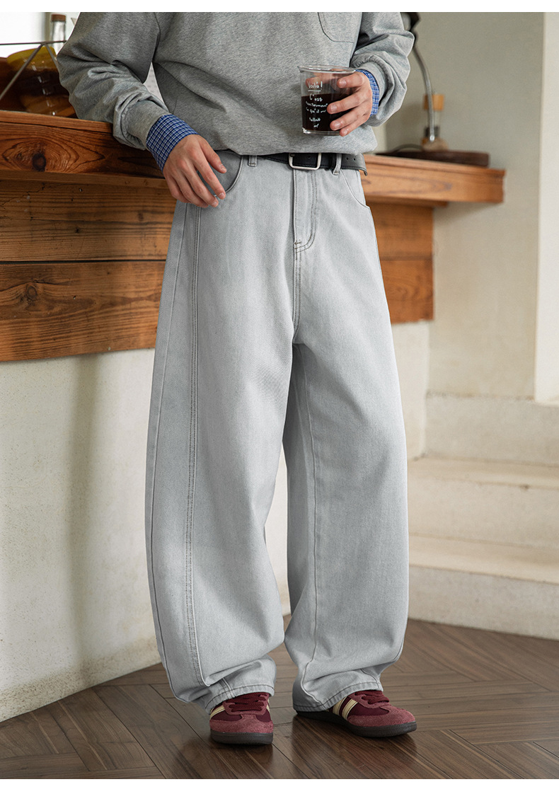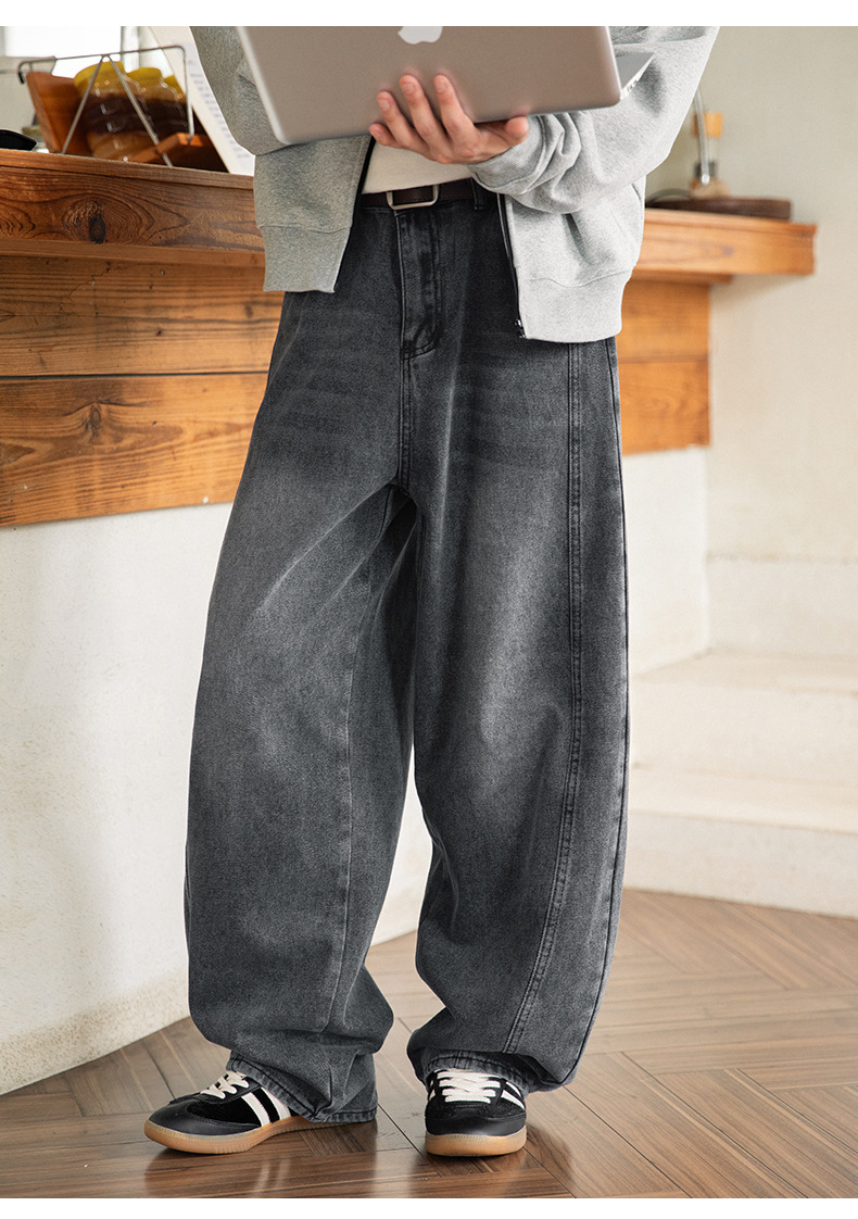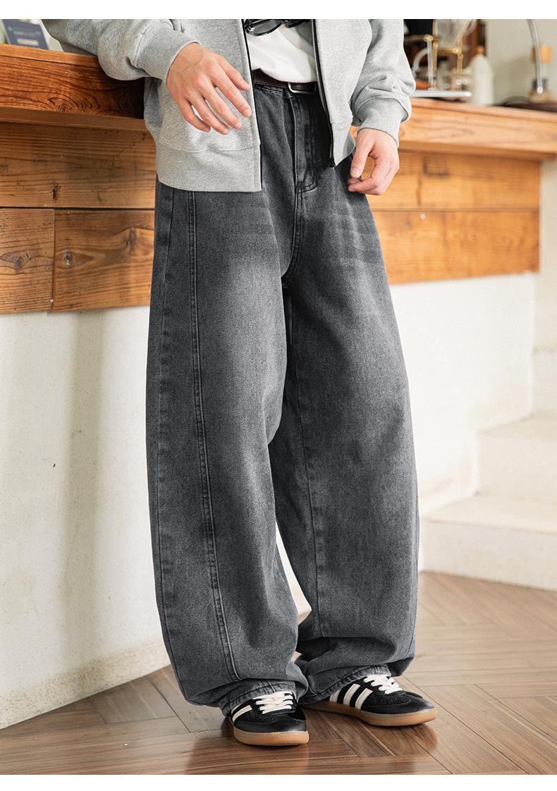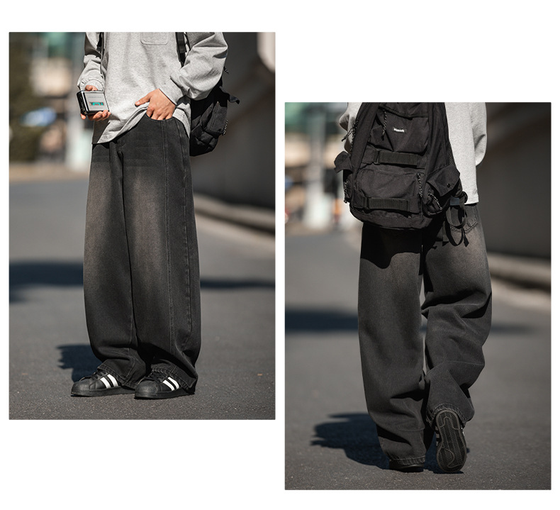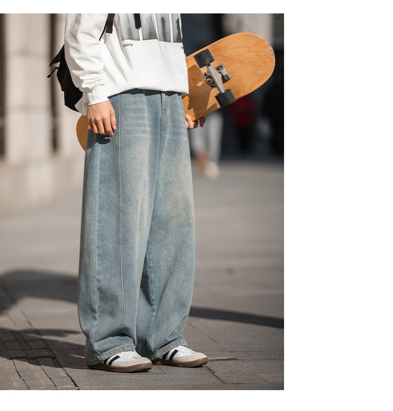 Старая стирка джинсов мужской весенний новый дизайн сшивания ятаган брюки ретро свободные силуэты длинные брюки