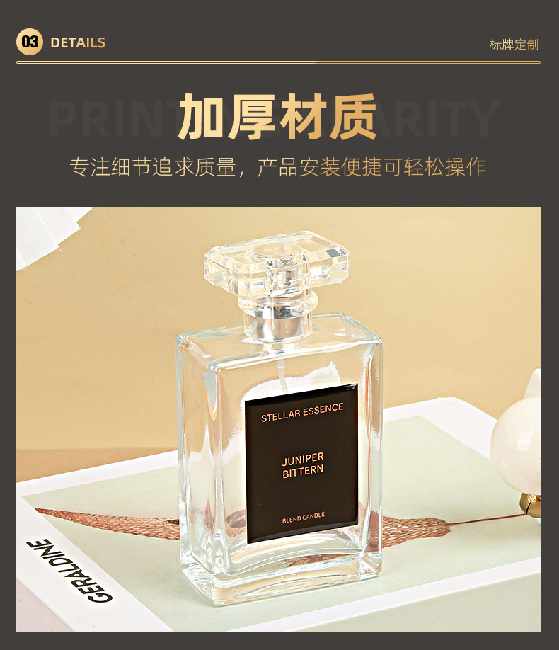 стеклянная бутылка духов, наклейка на бутылку