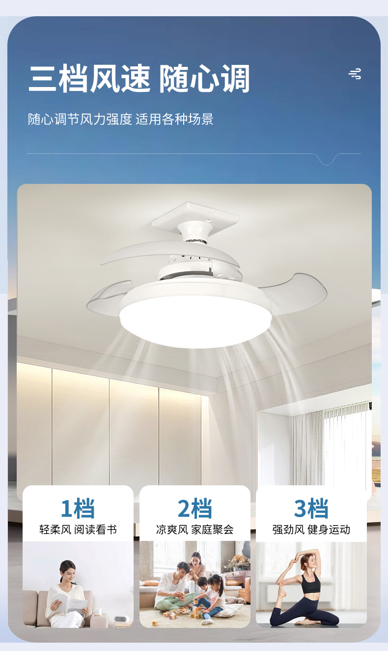Невидимая вентиляторная лампа трансграничная новая подвесная лампа E27 габаритная домашняя тихая небольшая вентиляторная лампа спальня вентилятор лампа