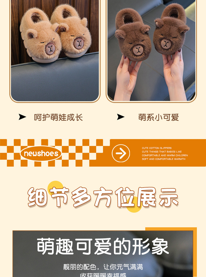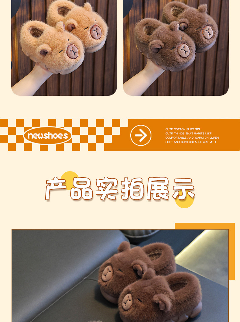 Капибара зимние детские хлопчатобумажные тапочки для мальчиков и девочек