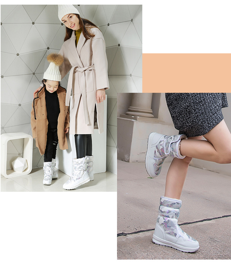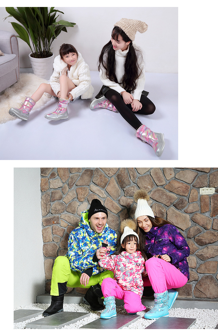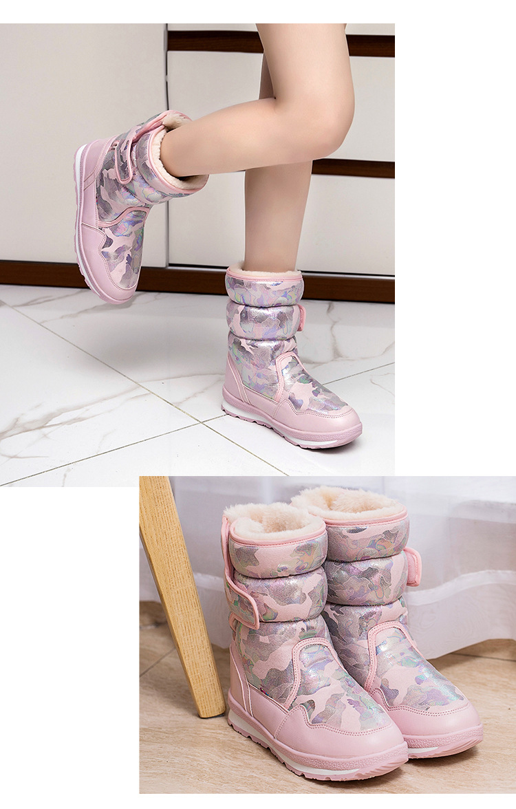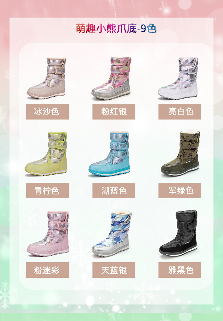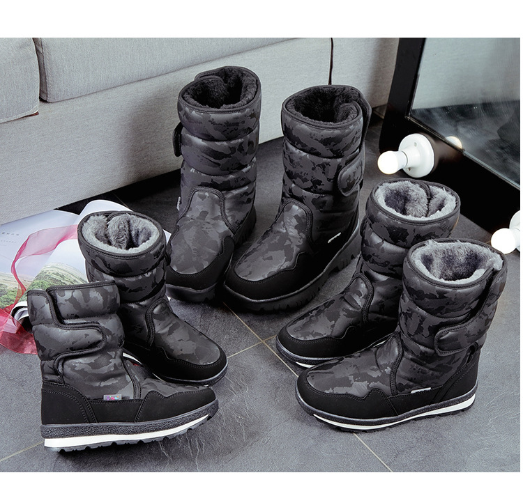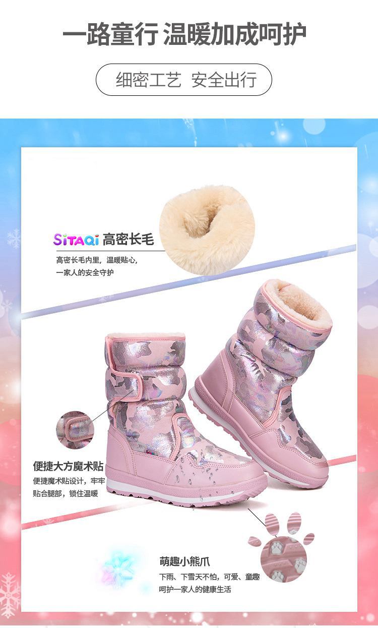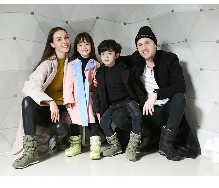 Детские зимние сапоги на липучках для родителей и детей, водонепроницаемые и нескользящие, весенне-осенние и зимние, средней длины, на флисовой подкладке и утепленные.