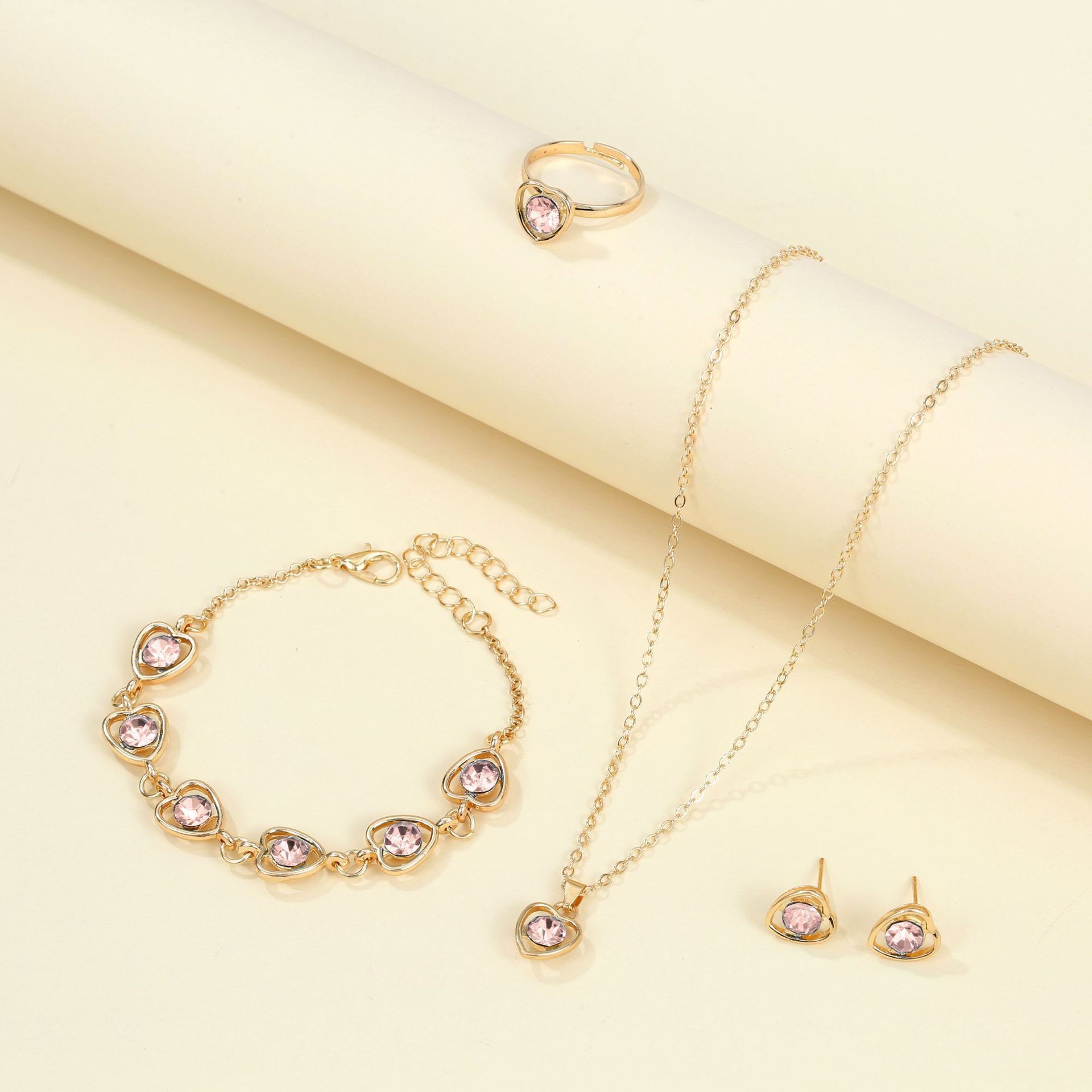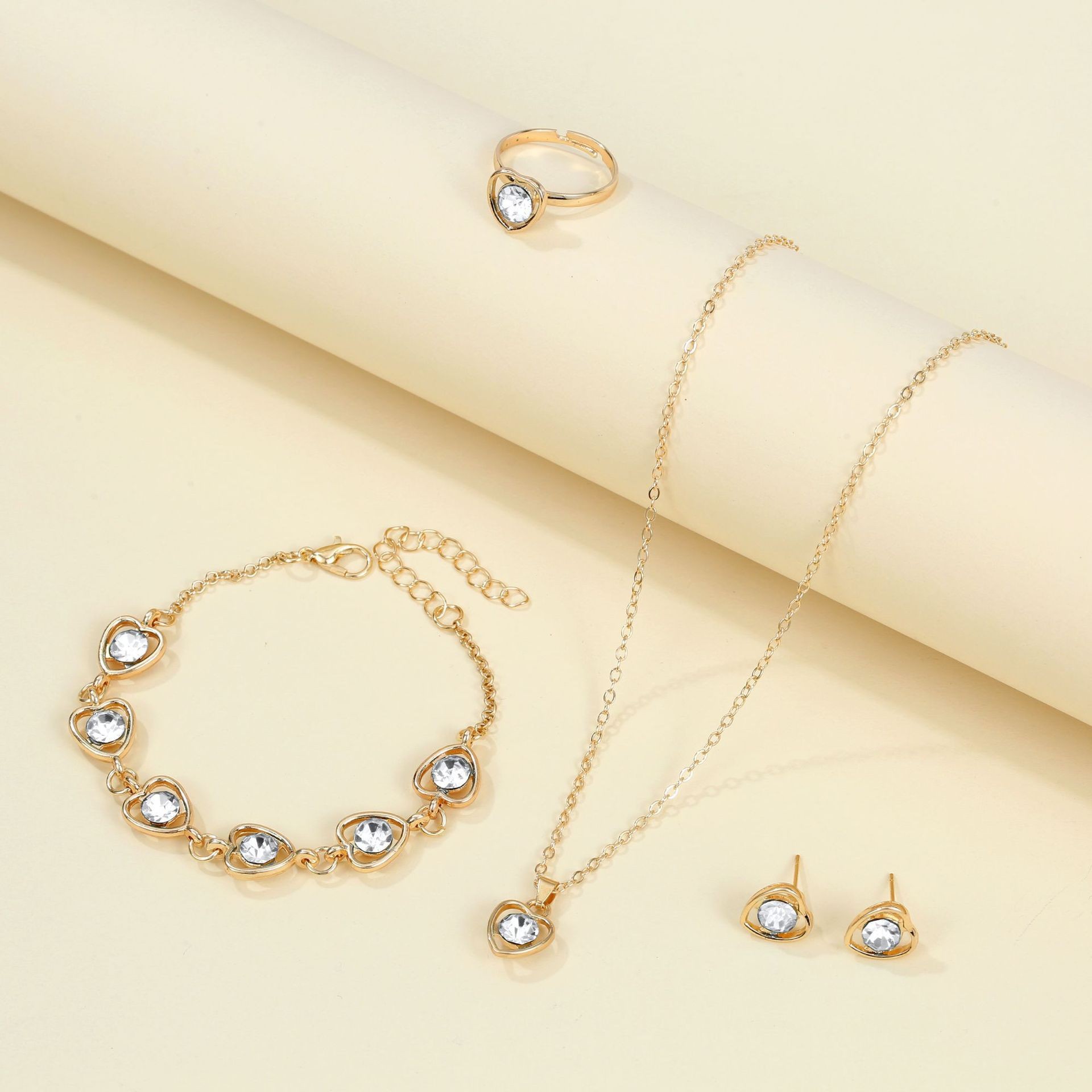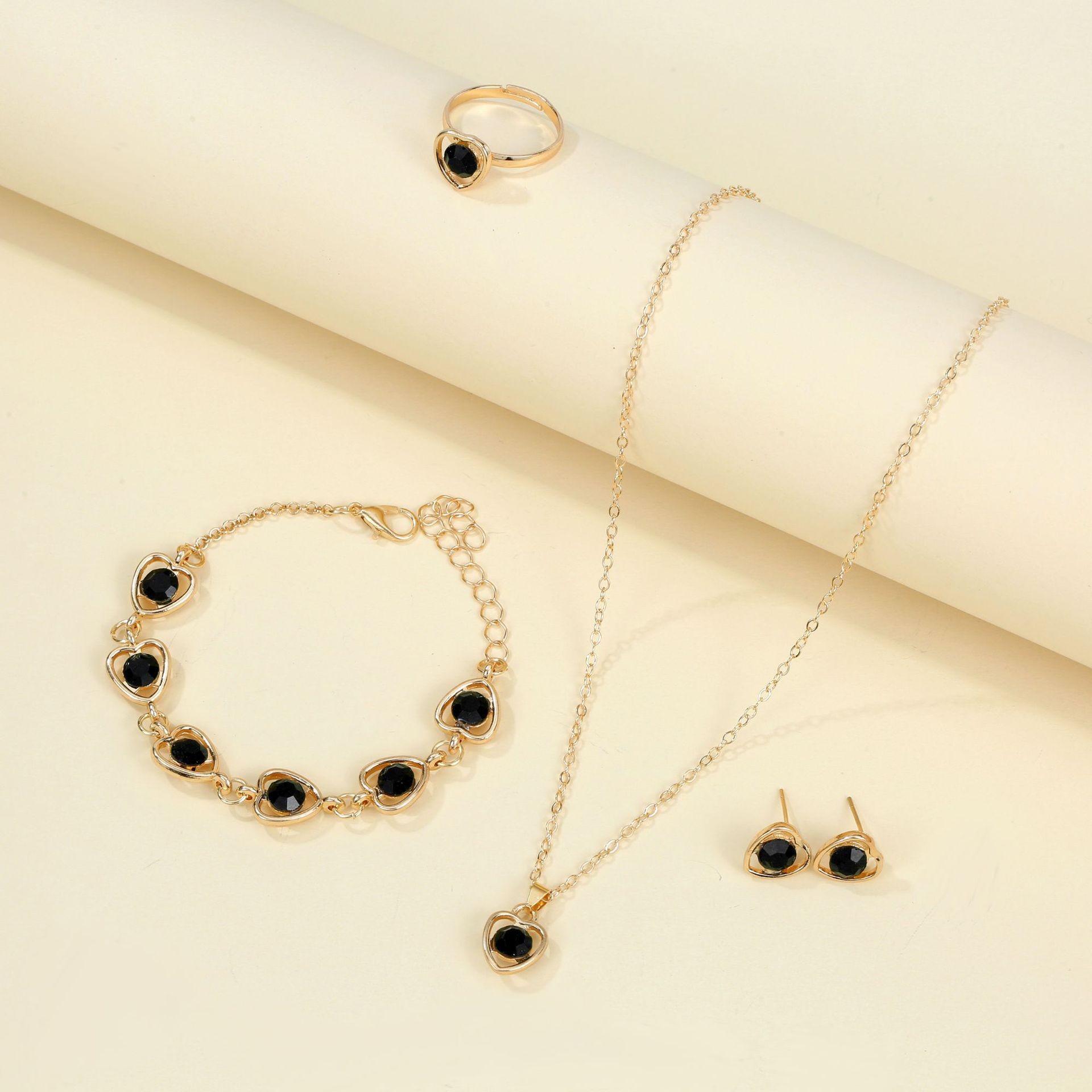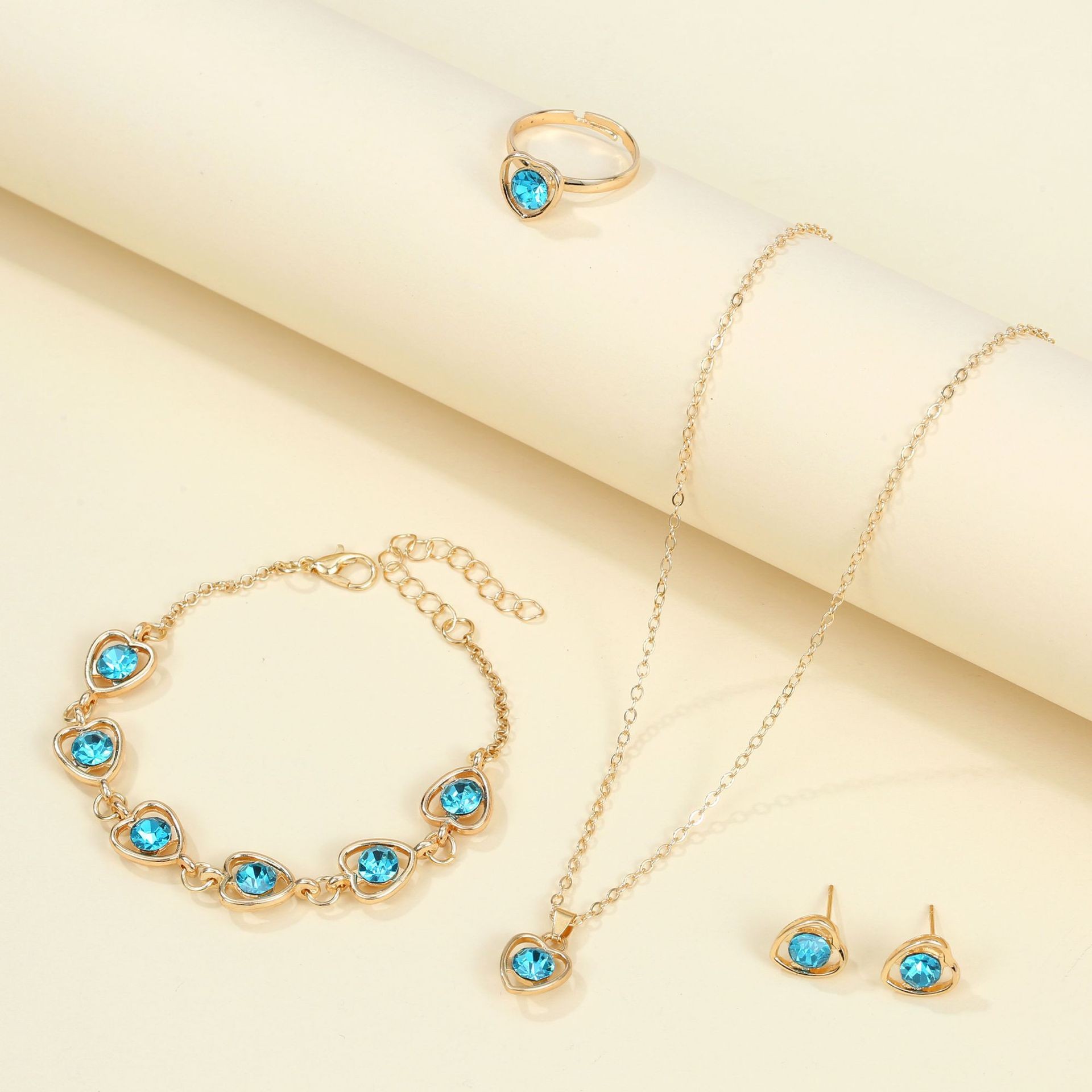 Трансграничные взрывные украшения Полая любовь Цветные серьги-гвоздики ручной набор модное ожерелье кольцо 4 комплекта