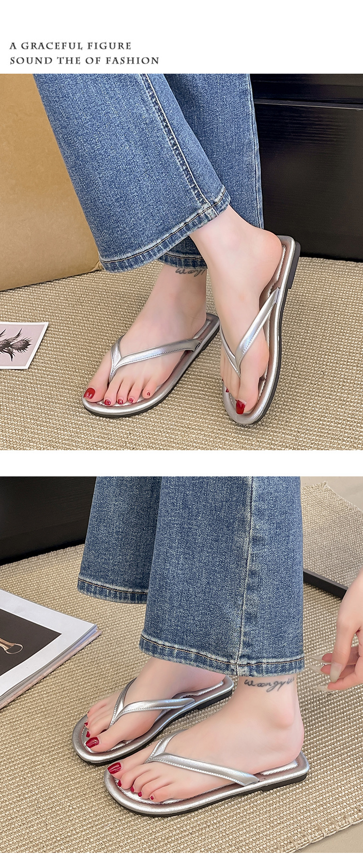 Шлепешки Летняя мода 2024 сети красный новый плоский фон повседневная нескользящая пляжная обувь сандалии