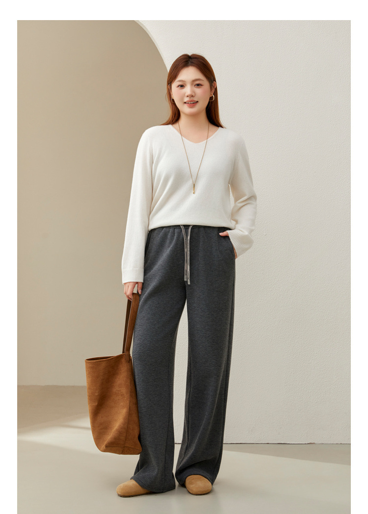 [Слабая и широкая нога плюс плюшевые и толстые клейкие рисовые штаны] Fely Show большой размер женский толстый mm2024 зимний новый