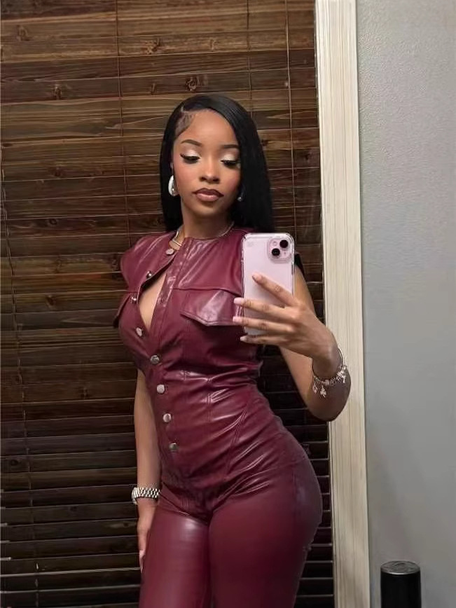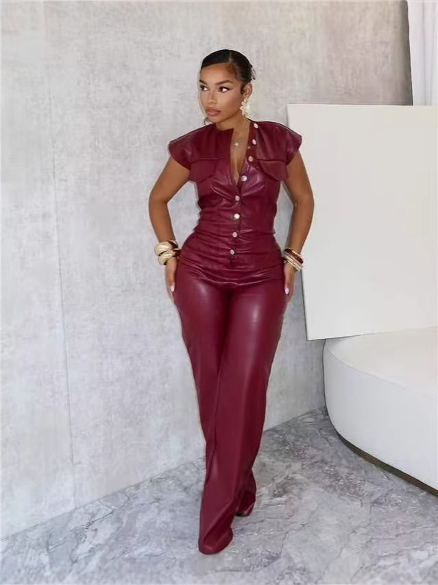 OL6163 Новые трансграничные поставки Amazon PU новые женские брюки без рукавов кожаные комбинезоны