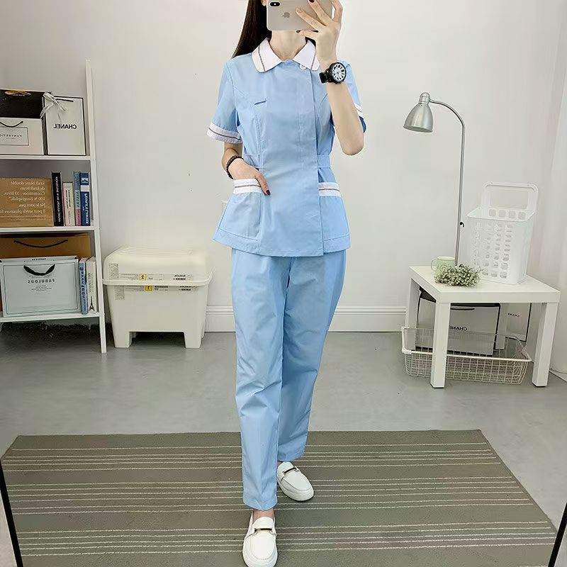 Униформа медсестры, женская медицинская рабочая одежда, комплект из двух предметов, белый халат врача, четырехсезонная одежда для маникюра и красоты с цветочным принтом.