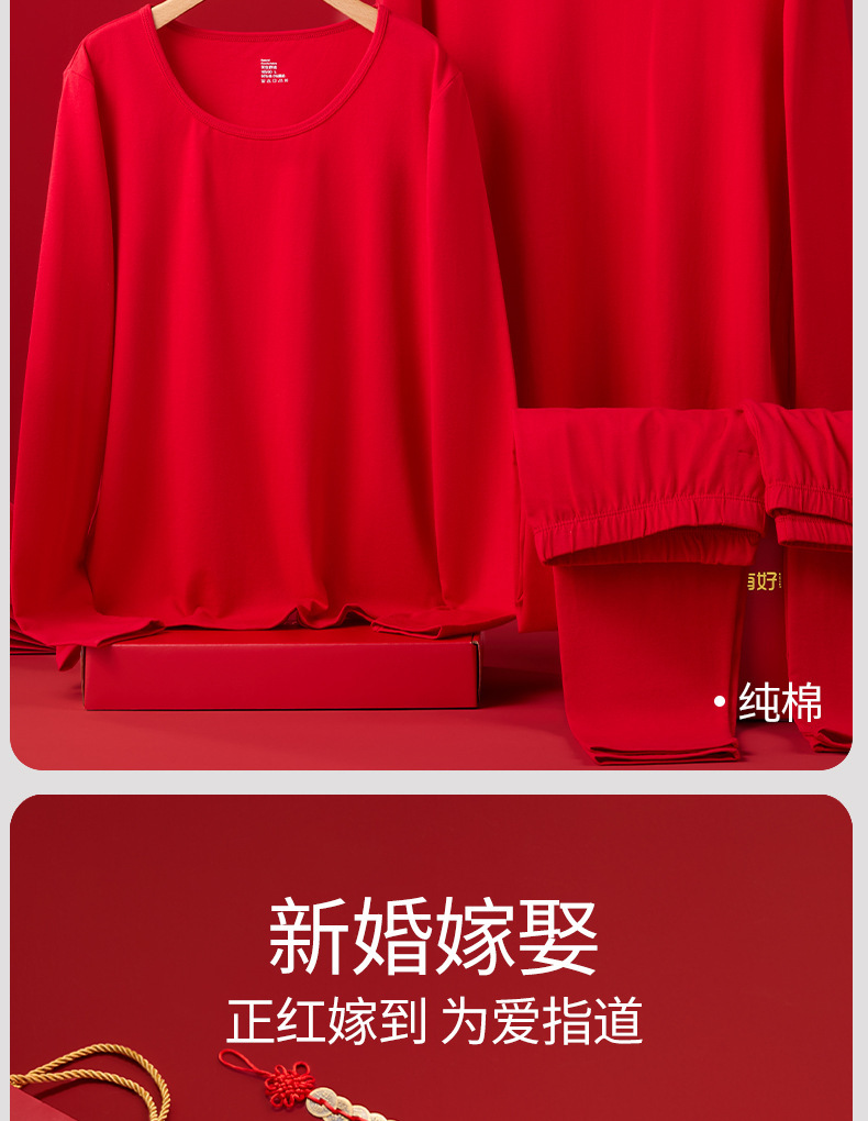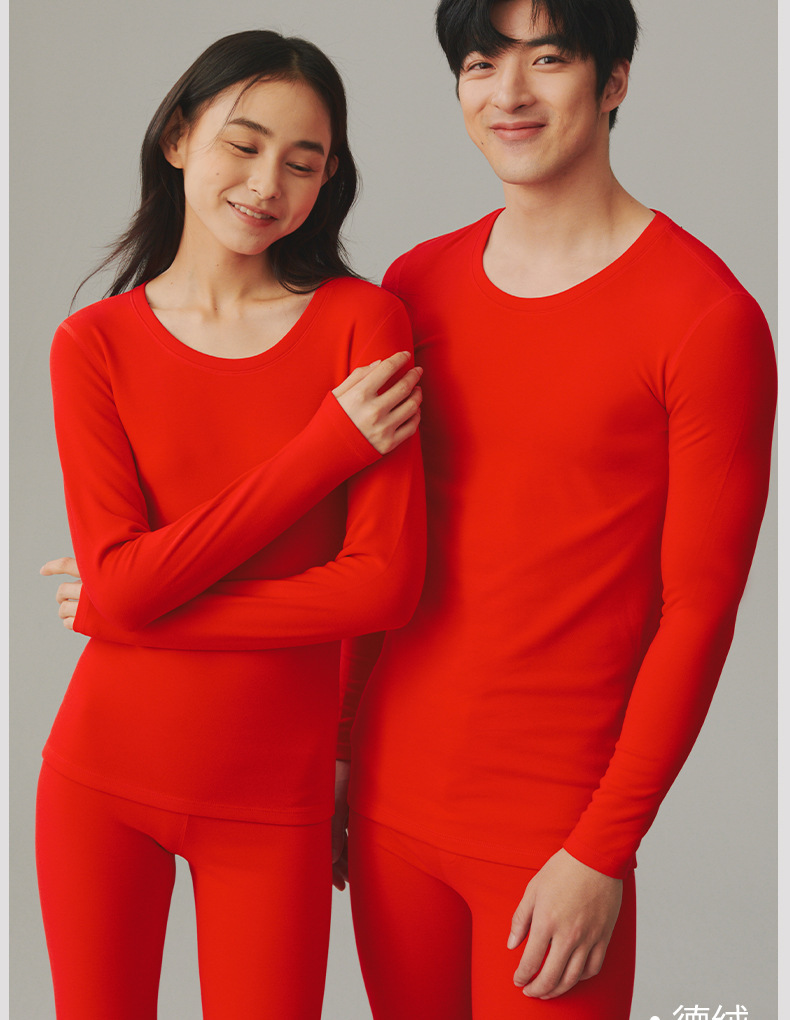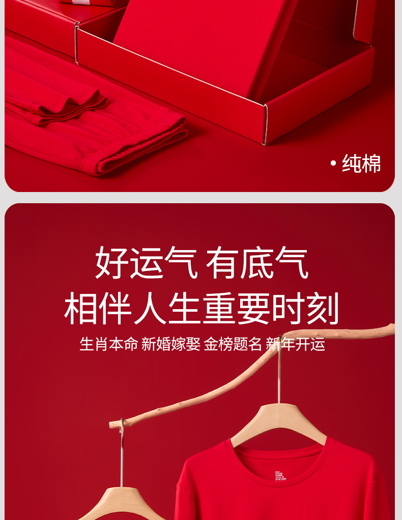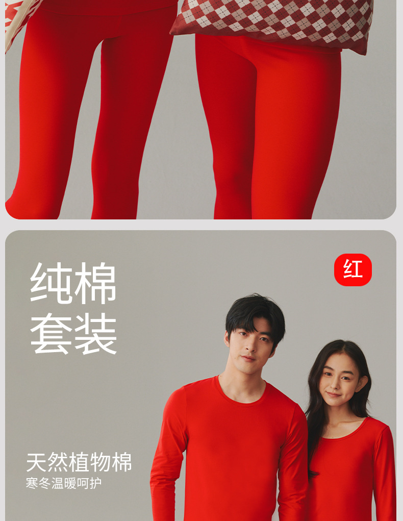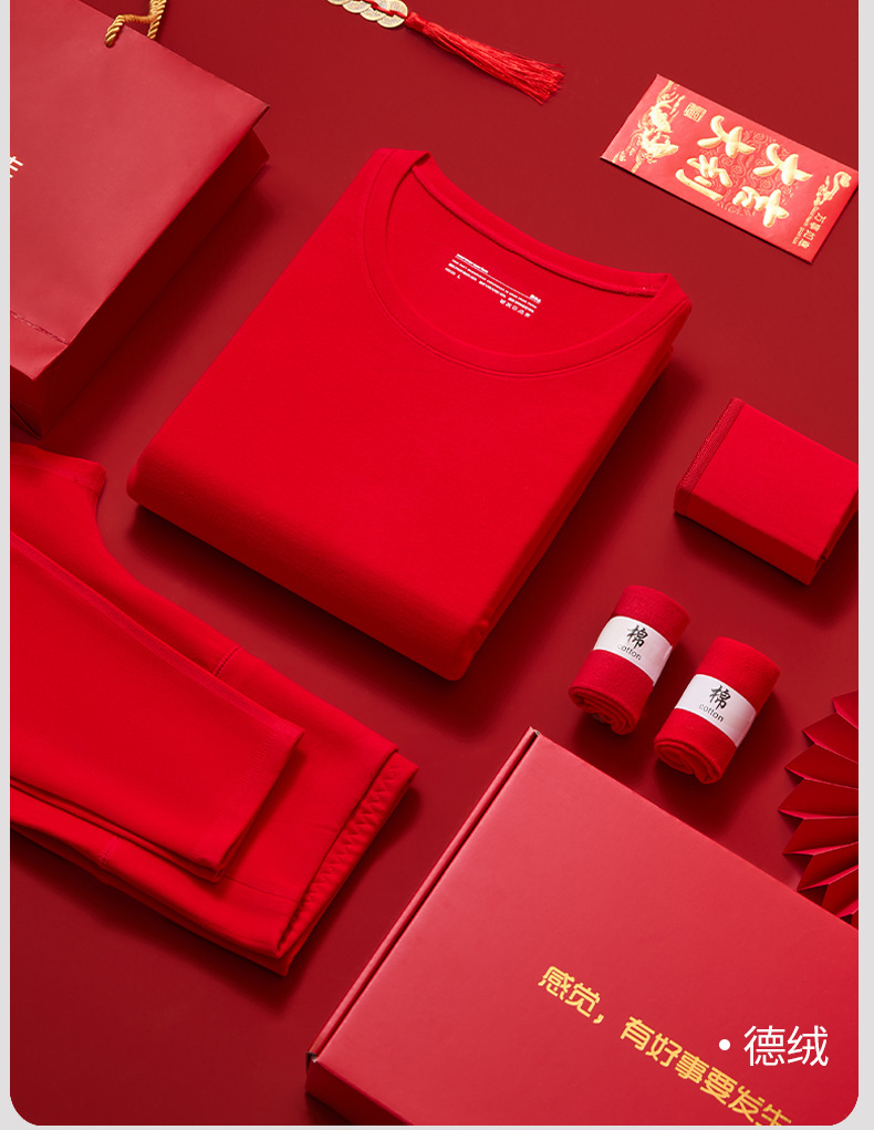 [Хлопок типа] Пара большой красный натальный год из хлопчатобумажного термобелья