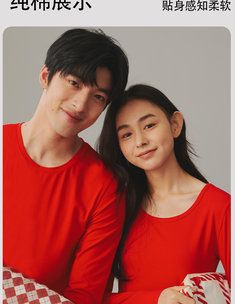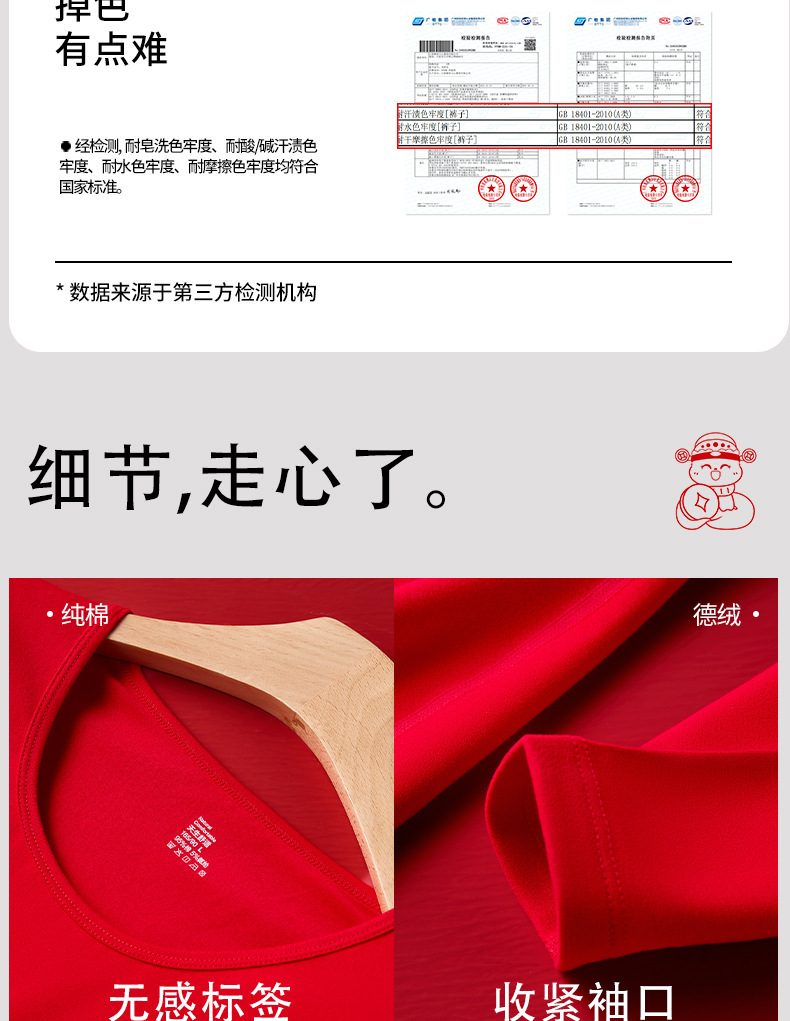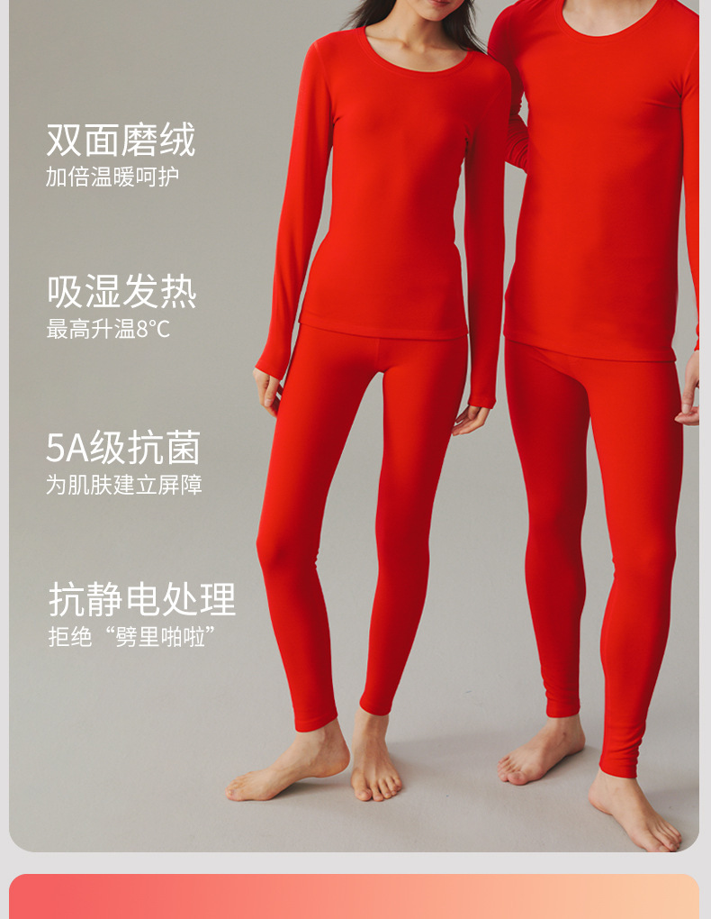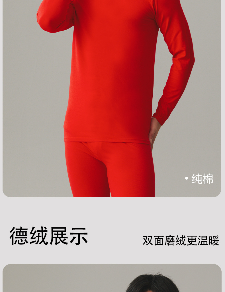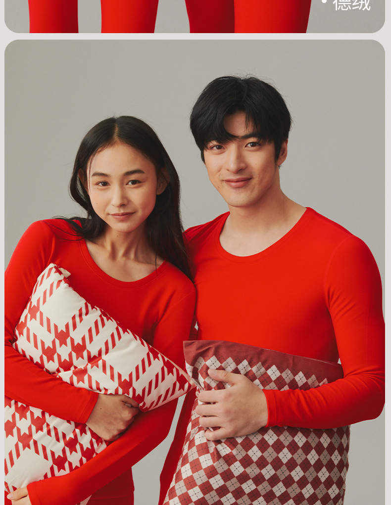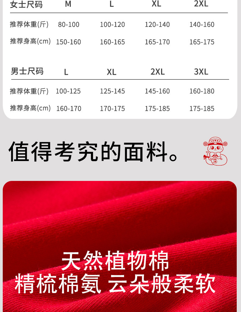[Хлопок типа] Пара большой красный натальный год из хлопчатобумажного термобелья