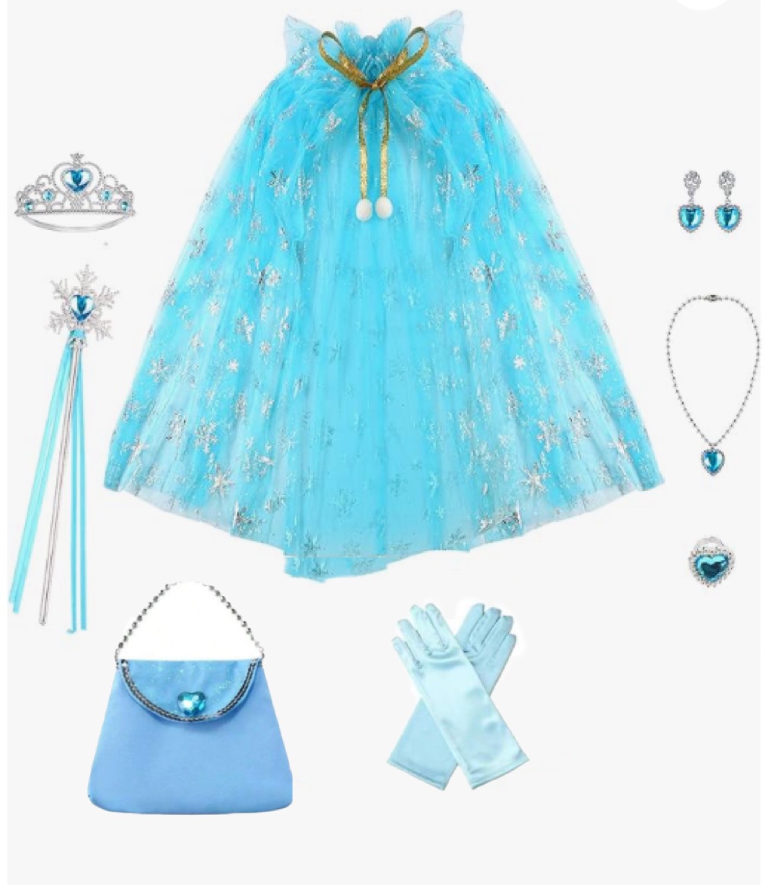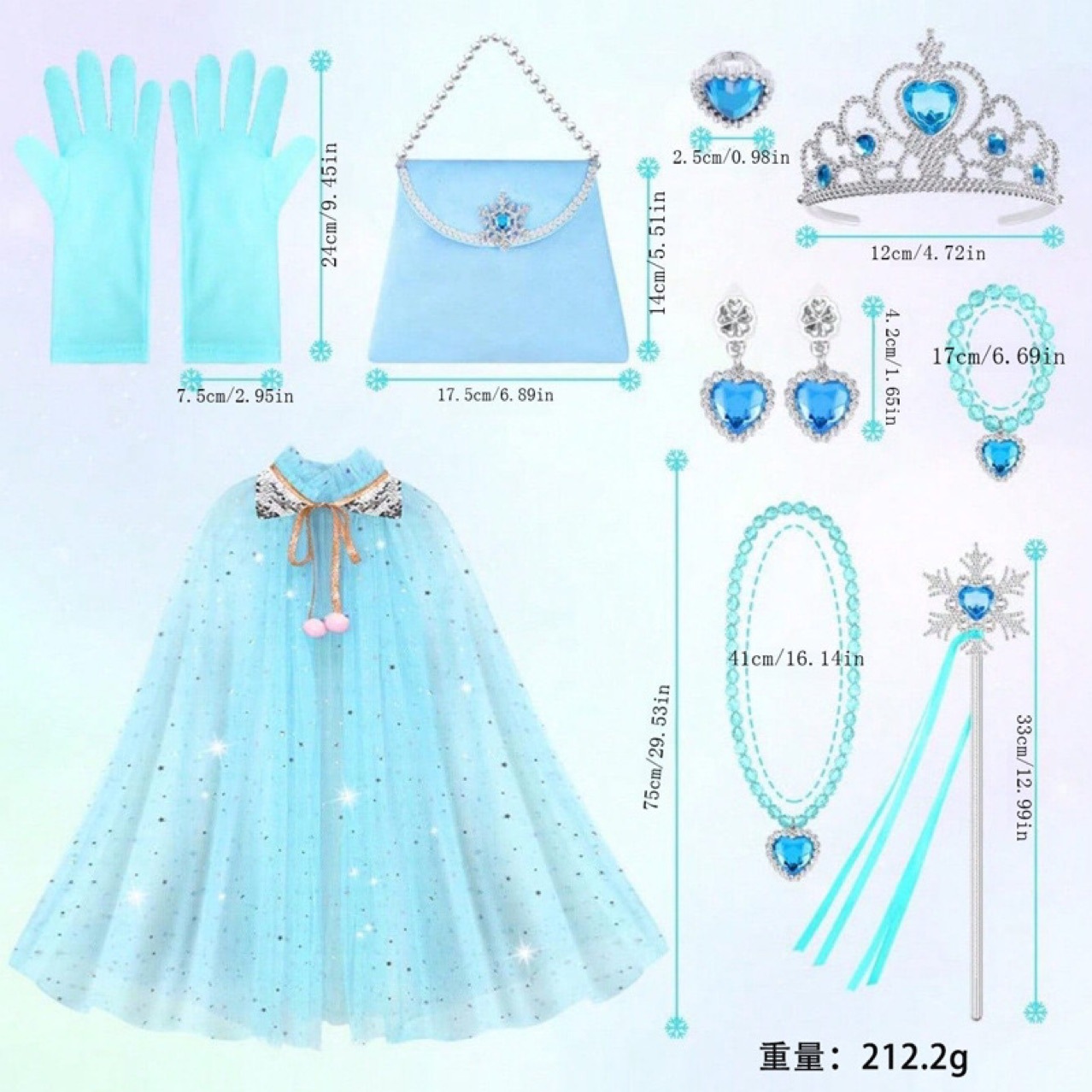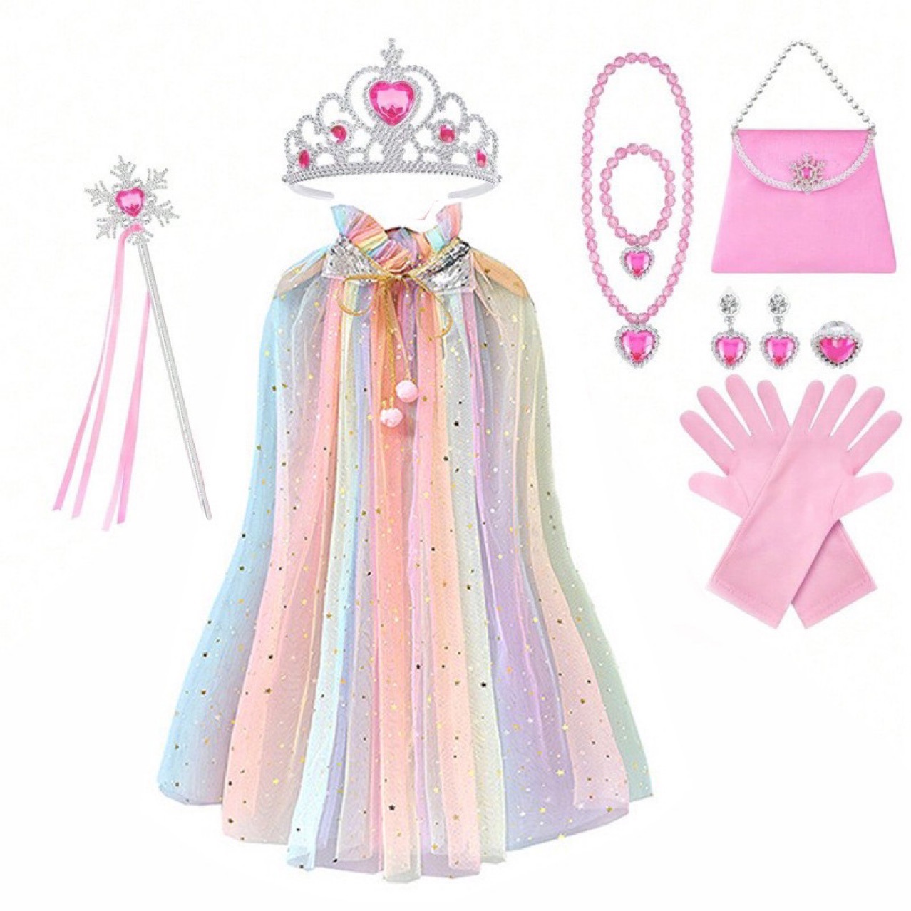 Набор из 11 предметов для детей: плащ феи, корона, колье с сердечком, кольцо, серьги, комплект плаща принцессы