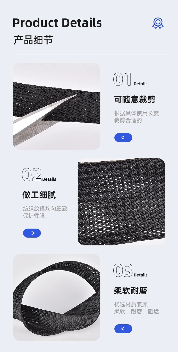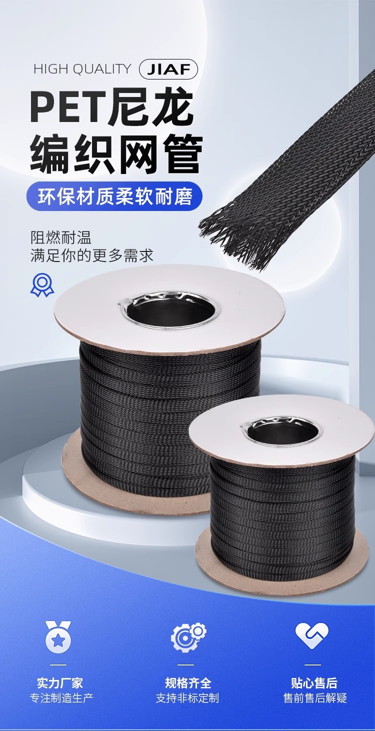 Черный PET нейлон огнестойкая тканая сетчатая трубка змеиная кожаная сетка телескопическая втулка кабель провода шасси чехол