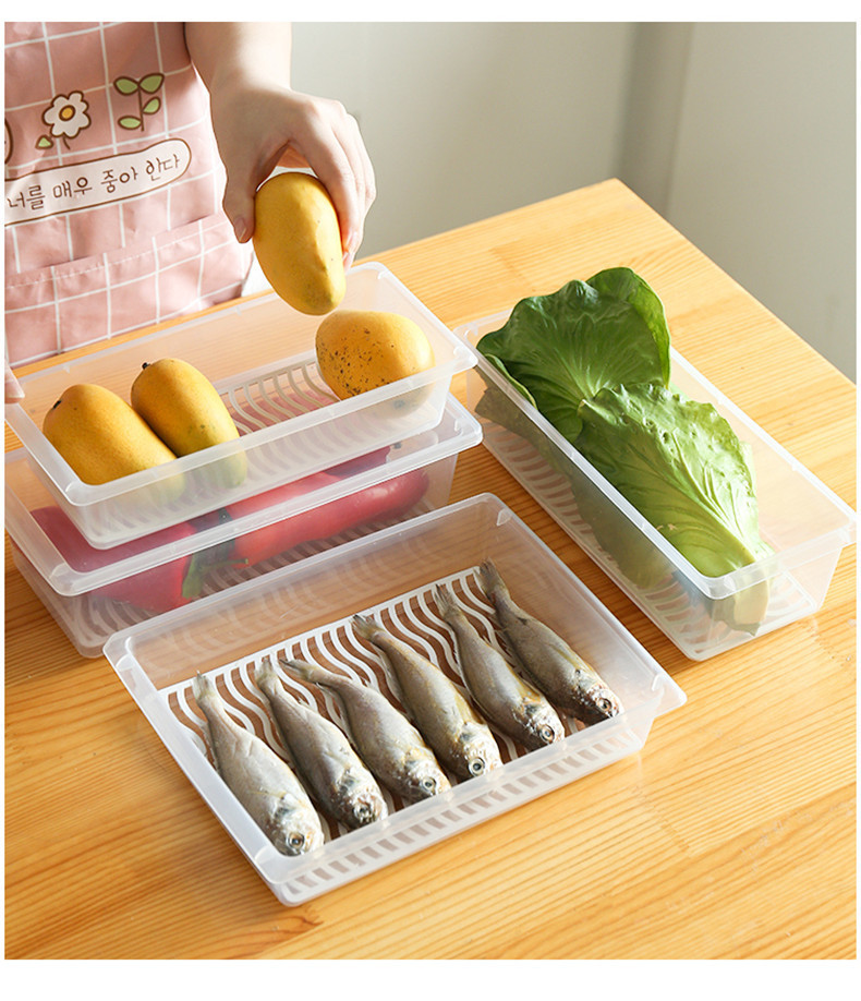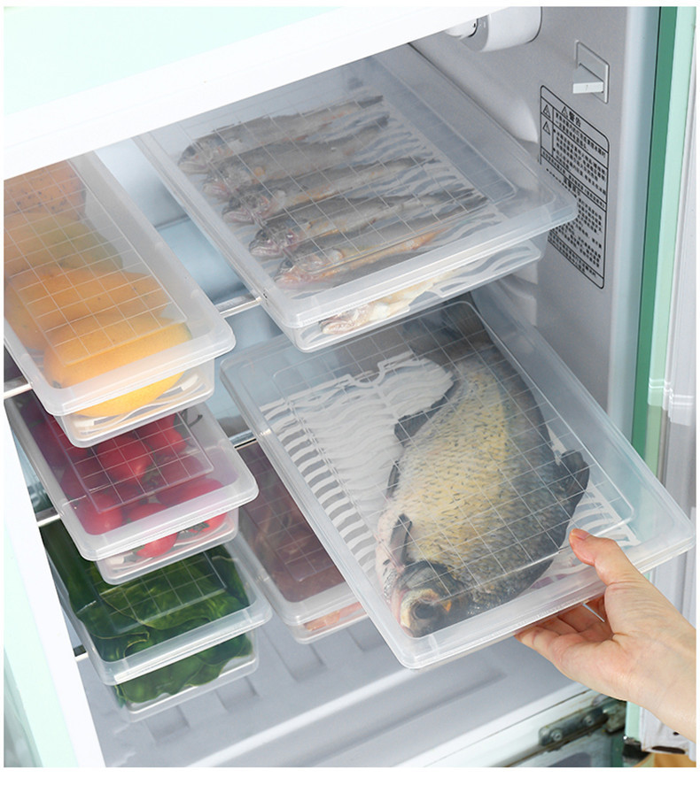Ящик для хранения кухонного холодильника с морозильной камерой, прямоугольный прозрачный ящик для хранения продуктов, пластиковый герметичный ящик для хранения слива с крышкой
