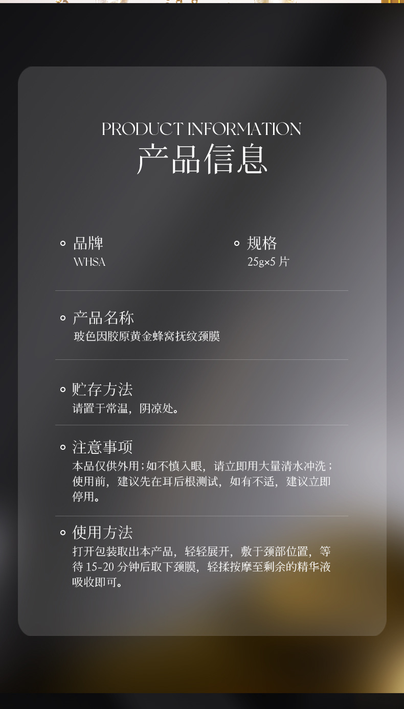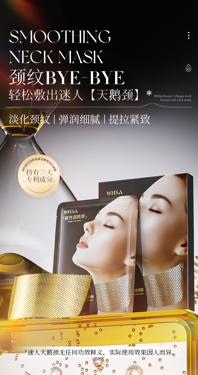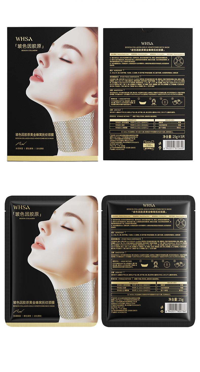 Whsa Bose Collagen Gold Honeycomb Разглаживающая маска для шеи от морщин в упаковке 25 г × 5 шт.; Whsa Bose Collagen Gold Honeycomb Разглаживающая маска для шеи от морщин - 25 г