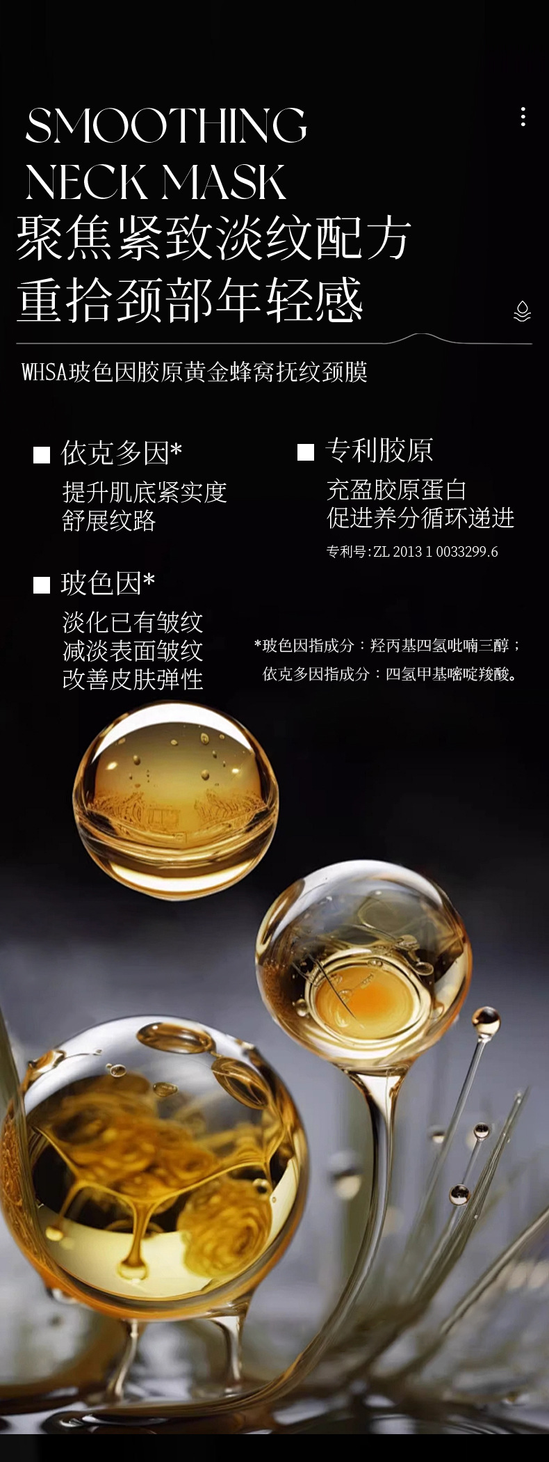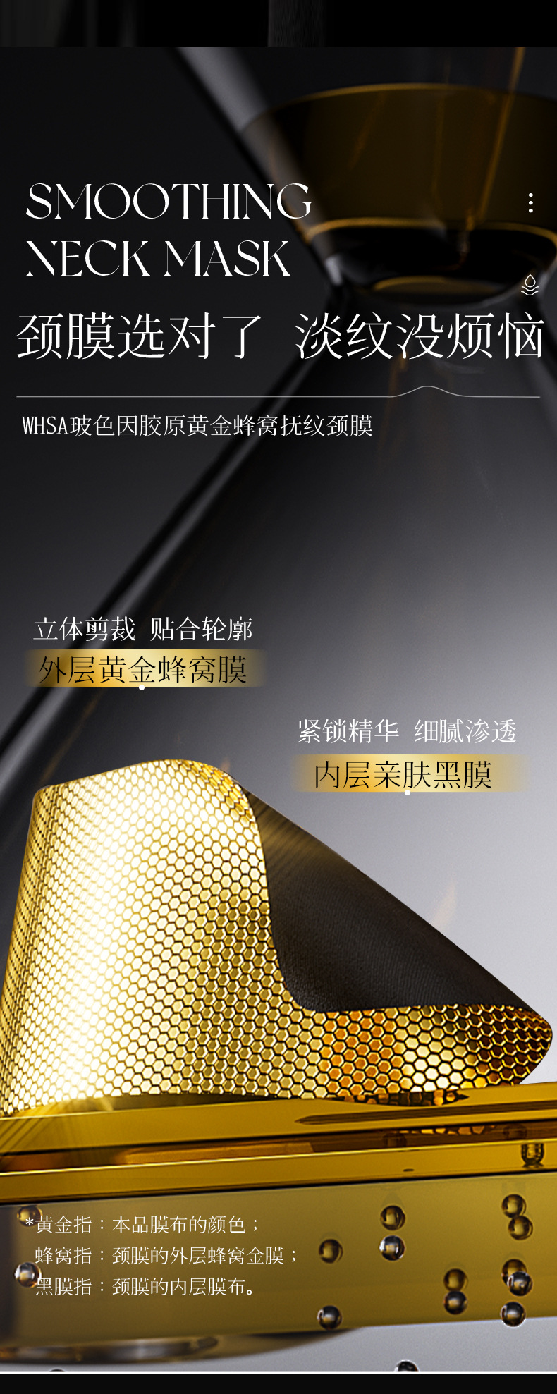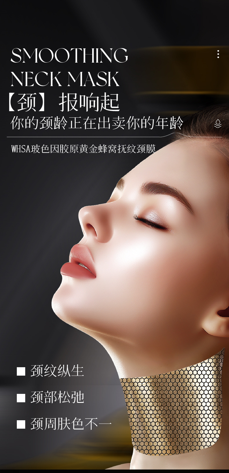 Маска для шеи WHSA с коллагеном из оленьей кости, золотом и медовыми сотами против морщин