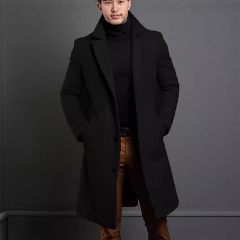 Новое поступление: мужское шерстяное пальто 2025 года, средней длины, однотонное, осенне-зимнее, теплое, для молодежи.
