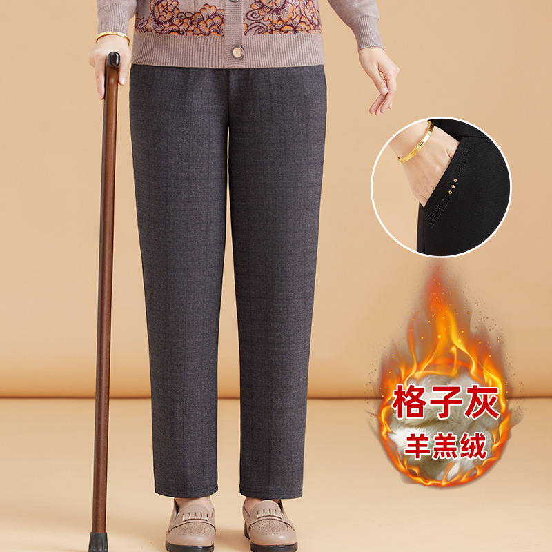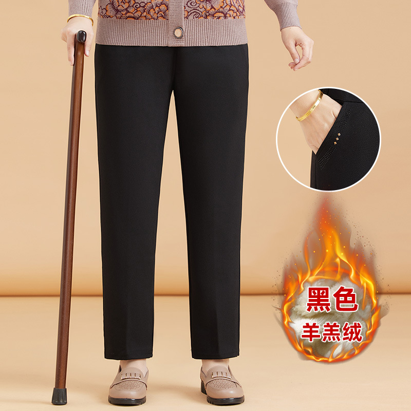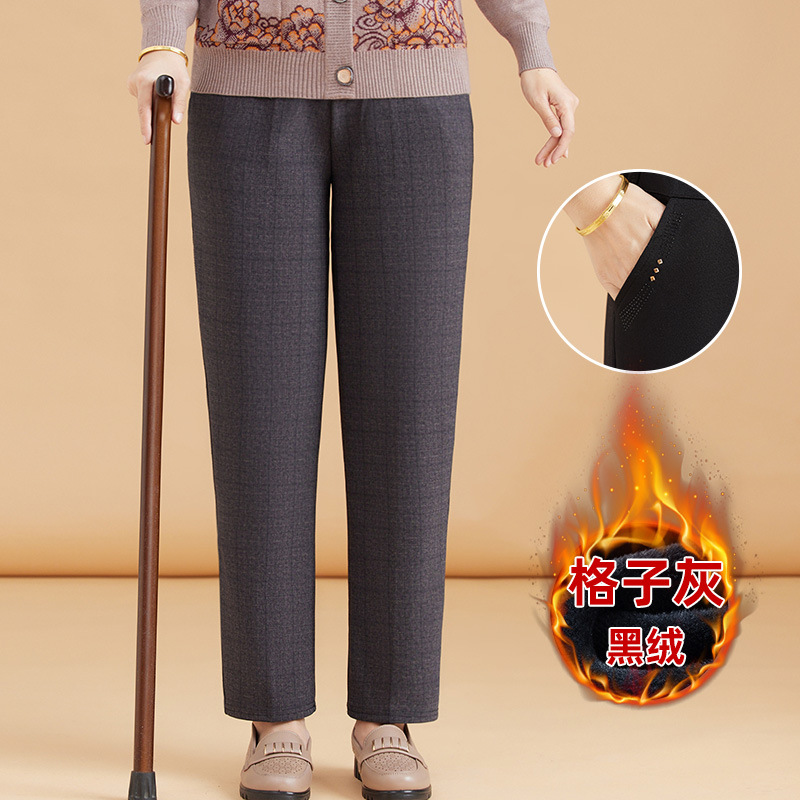 Мама брюки зимний бархат утолщенные теплые хлопчатобумажные брюки среднего и пожилого возраста женские брюки весна и осень бабушка большой размер свободно носить на улице