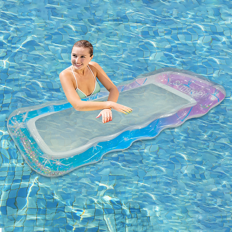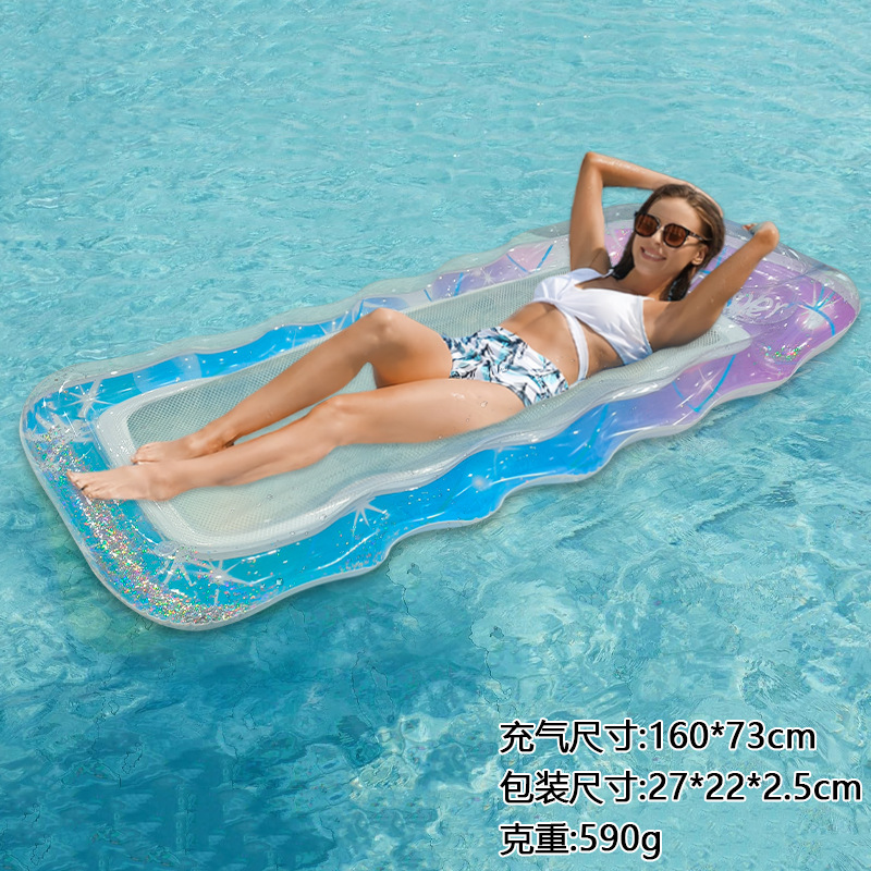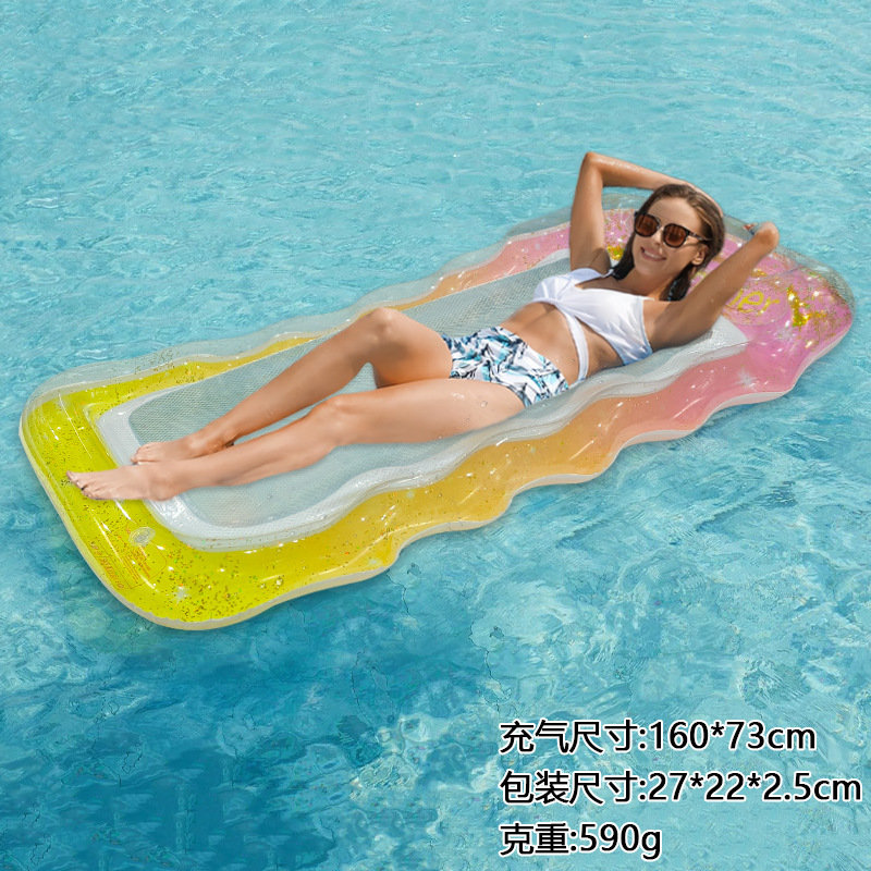 Новая модель блесток градиент волнистая сетка одиночная шея надувной шезлонг на открытом воздухе водная аттракцион для взрослых надувной плавучий ряд