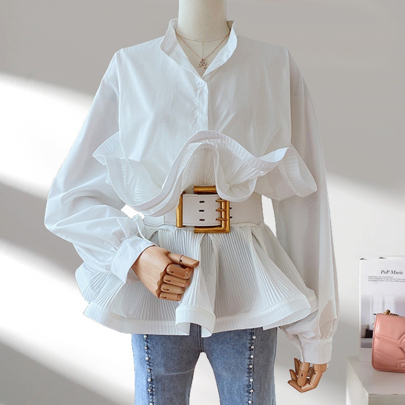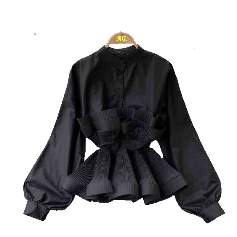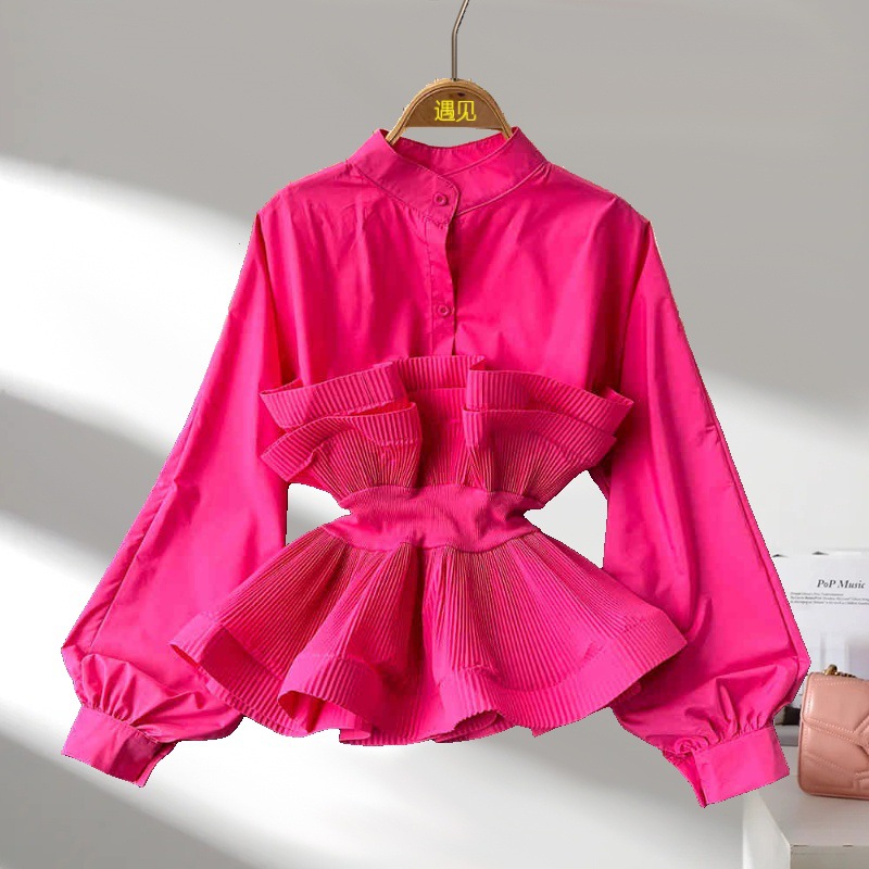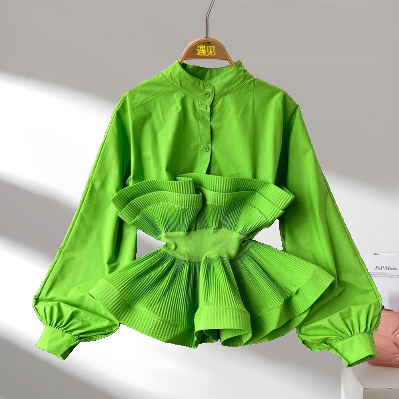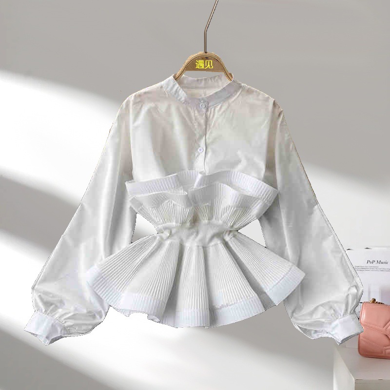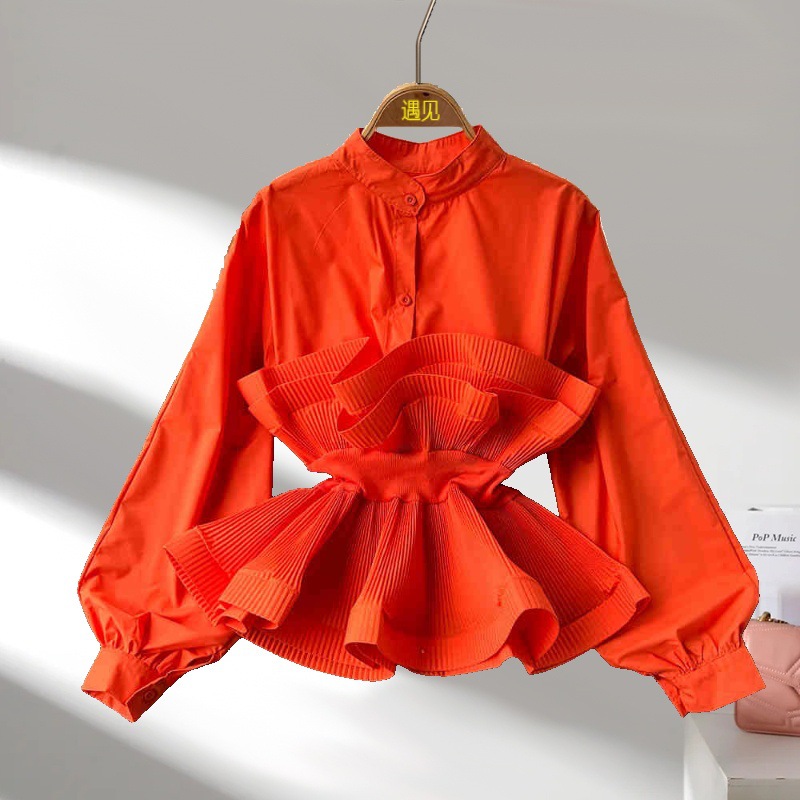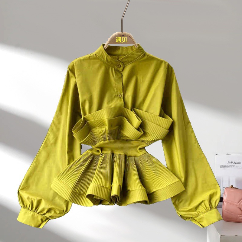 Рубашка с длинными рукавами женская чувство дизайна нишевые трехмерные плиссированные листья лотоса, талия тонкая, дикая весенняя рубашка женская