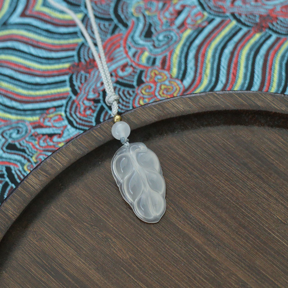 Подлинный лед белый агат листья подвески для мужчин и женщин хрустальные украшения с высоким льдом агат подвески новые китайские листья