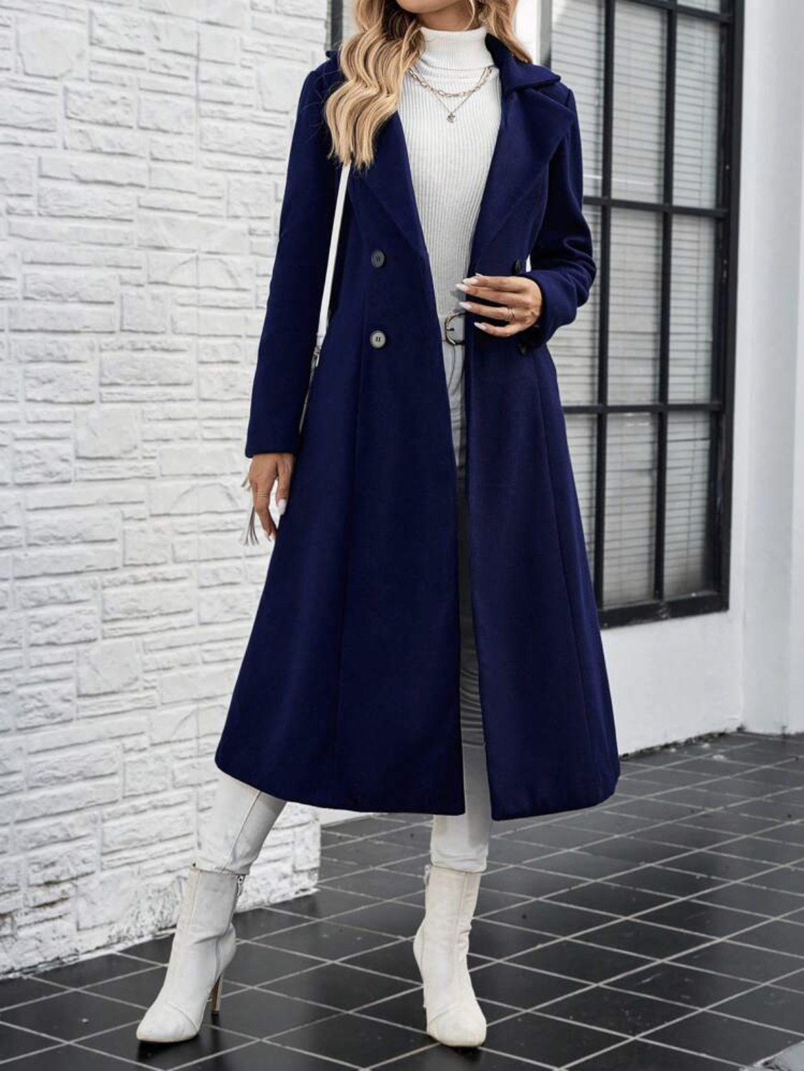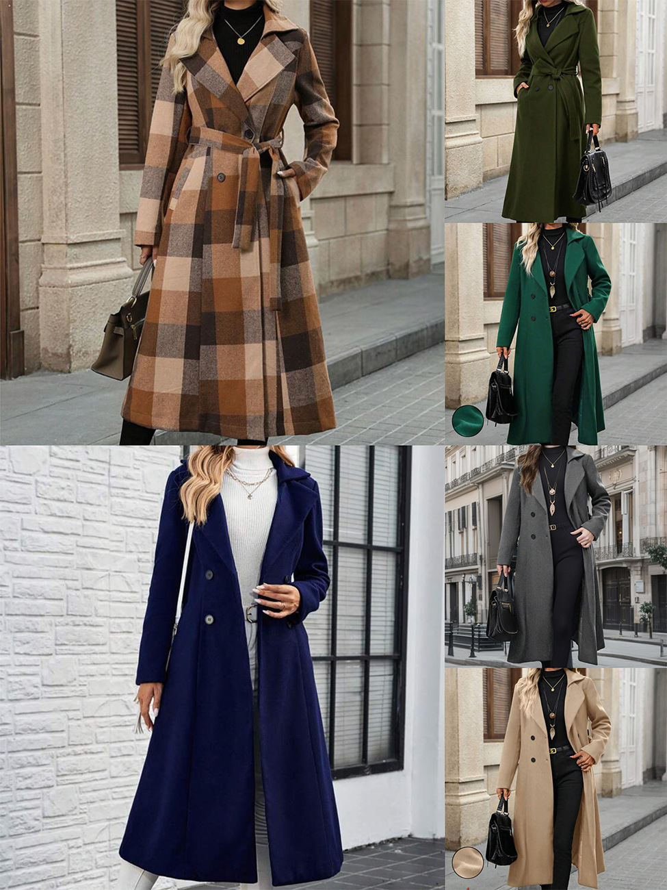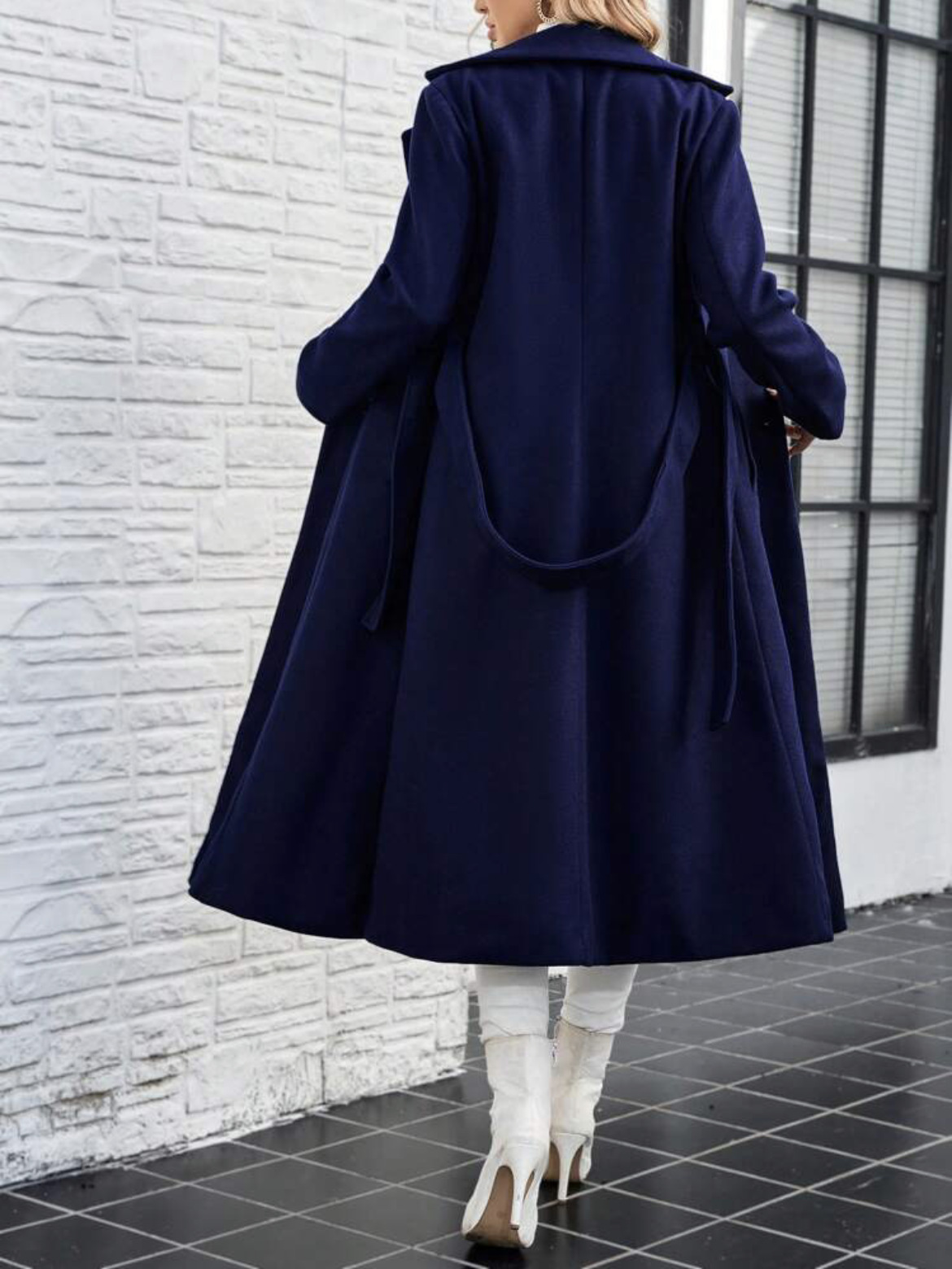 Европейская и американская Amazon трансграничная внешняя торговля новый лацканный шерстяной шнуровка двубортный плюс длинное пальто пальто пальто женская ветровка