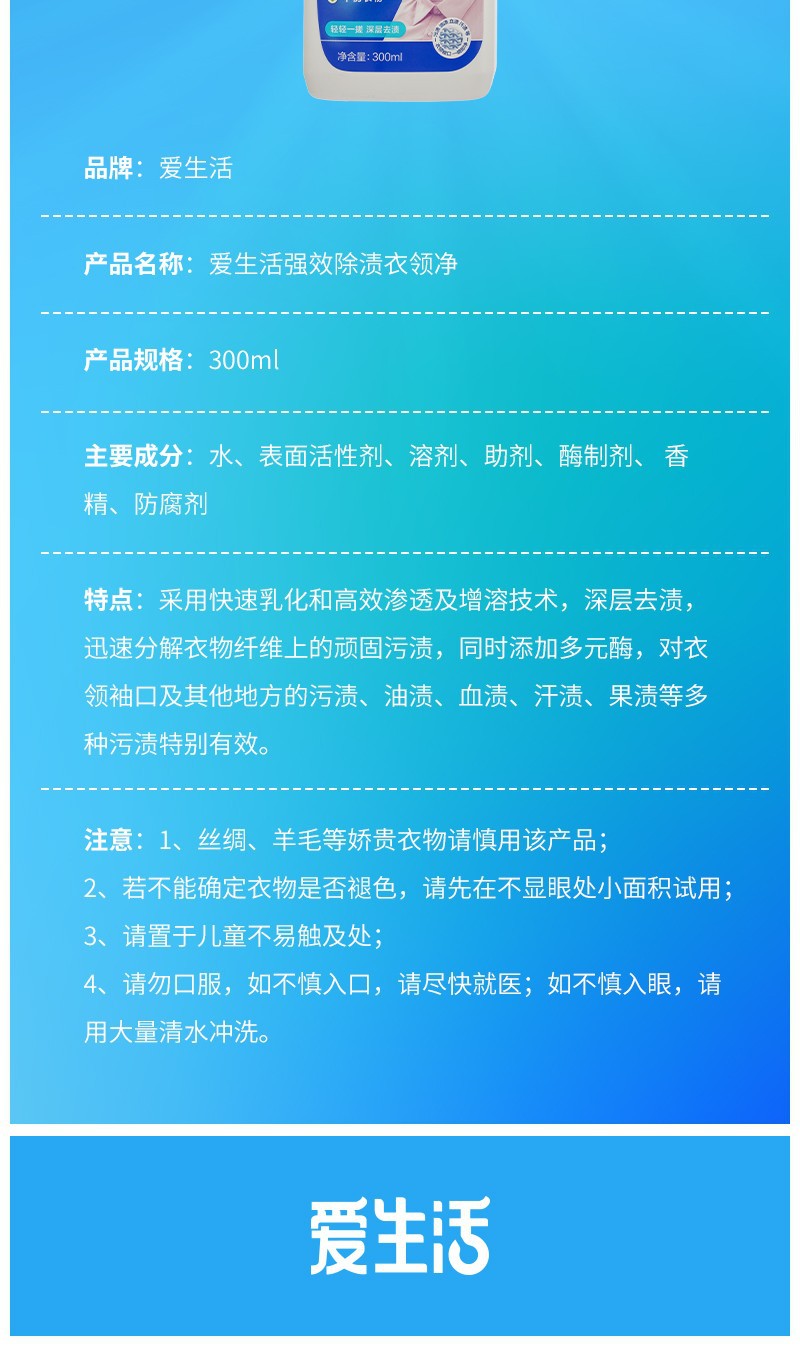 Зеленые листья любят жизнь сильна для удаления пятен воротник и нежная формула для глубокого удаления пятен с высокой эффективностью проникновения подлинные 300ml