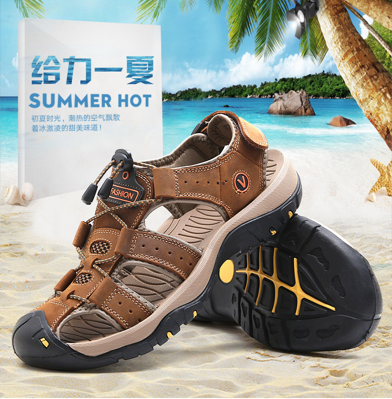 Мужская обувь Летняя новая сандалия большого размера мужская повседневная пляжная обувь нескользящая и износостойкая головка дышащие холодные тапочки