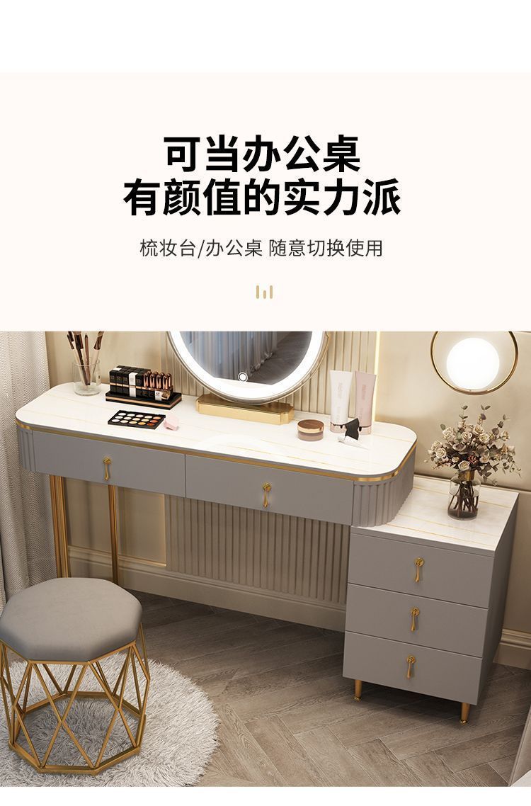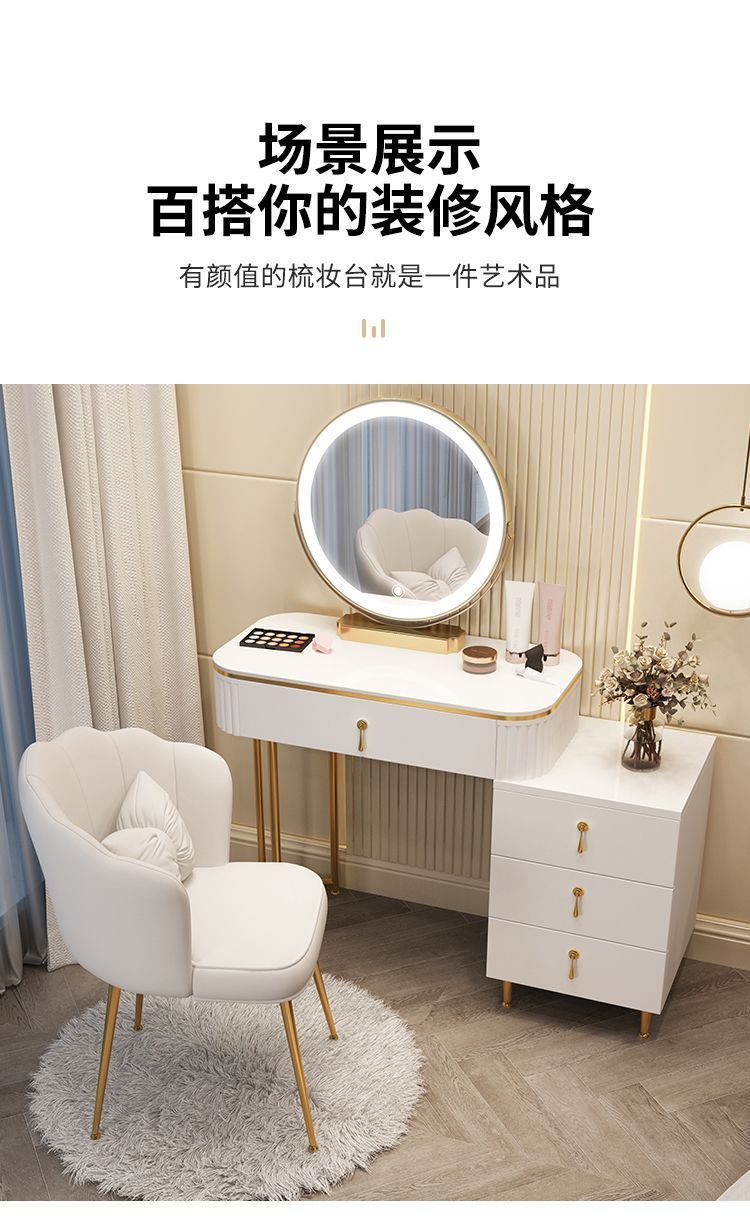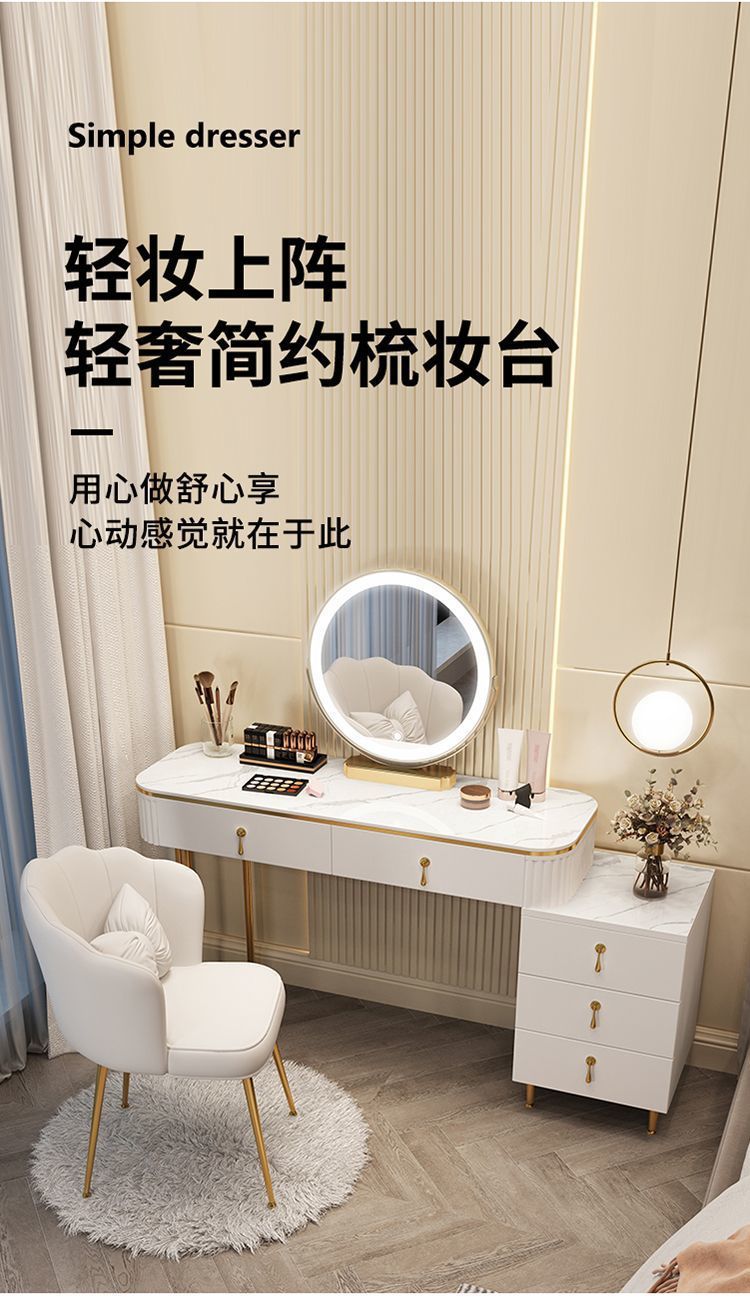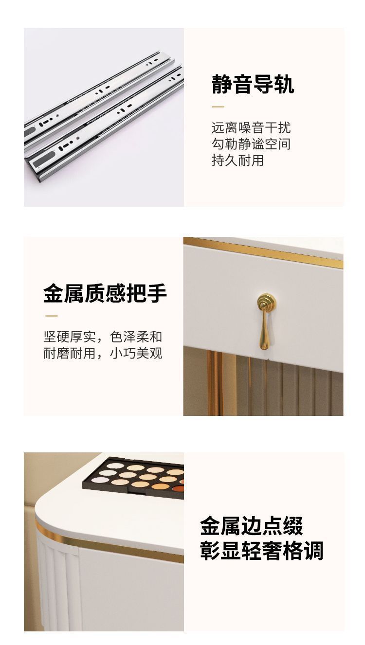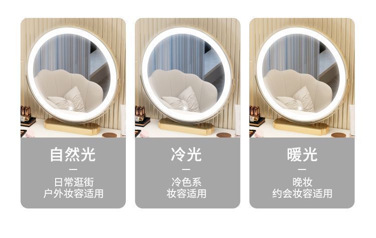 С табуретом для макияжа, с шкафом, с зеркалом, можно толкать и тянуть, выдвижной.