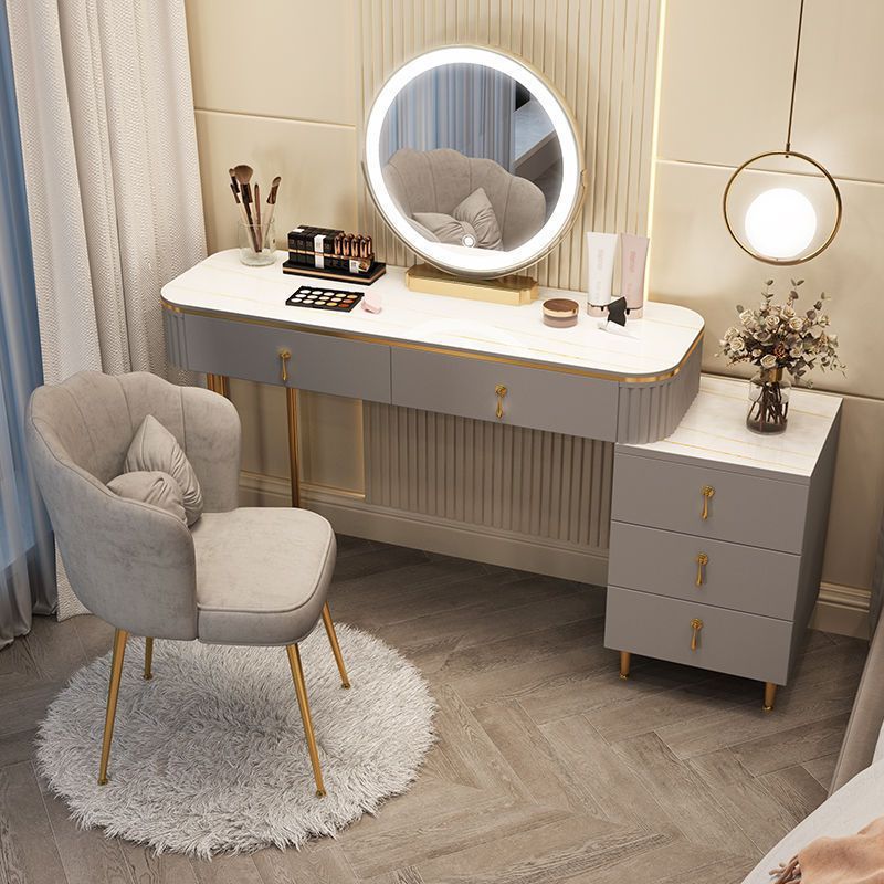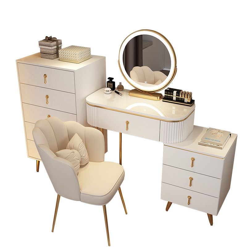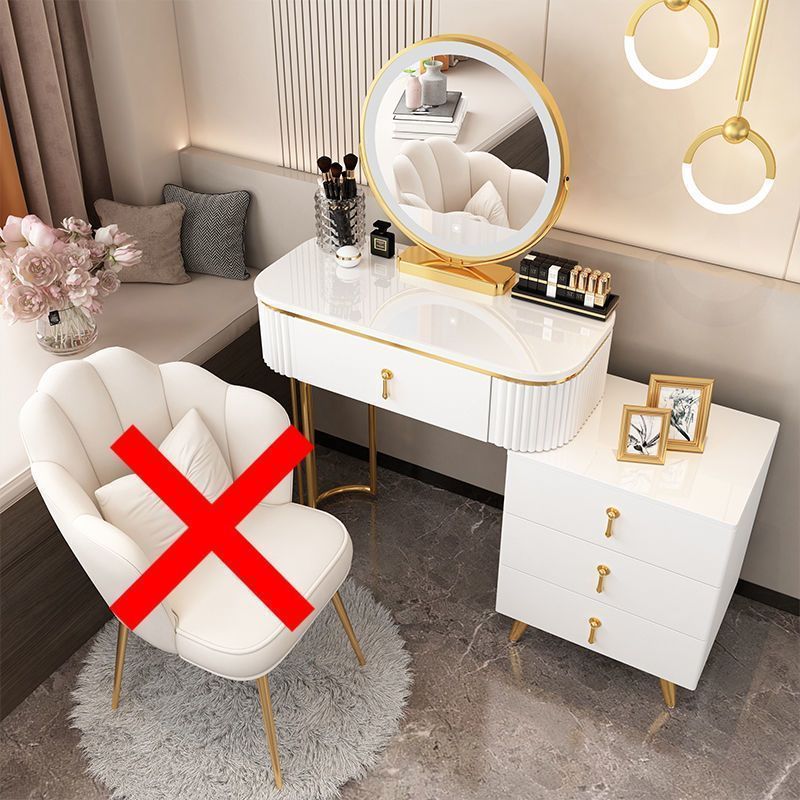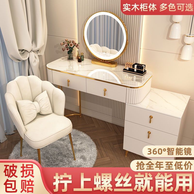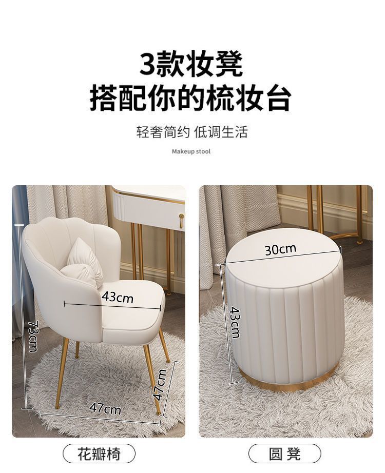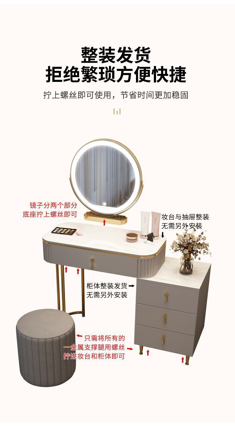 С табуретом для макияжа, с шкафом, с зеркалом, можно толкать и тянуть, выдвижной.