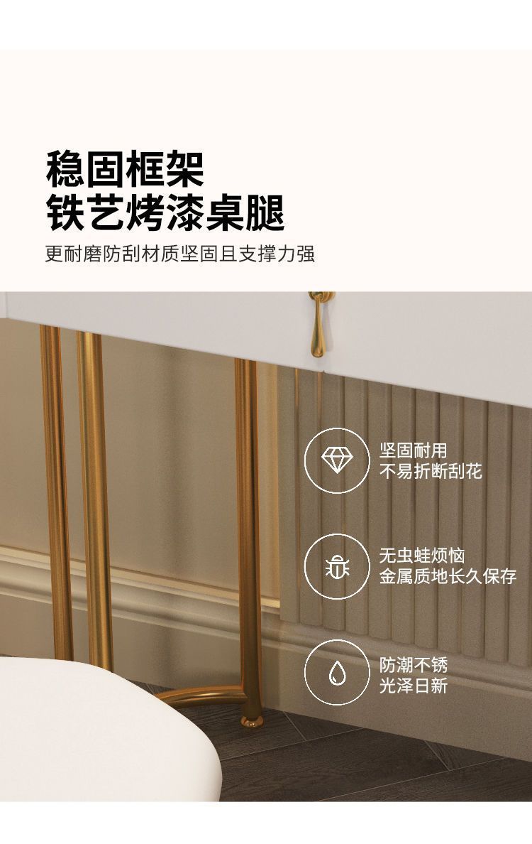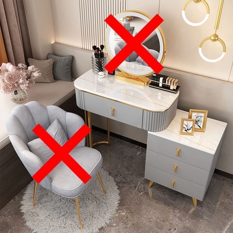 Сервант Qingcheng с тремя ящиками и молочными белыми золотыми ножками - поставляется в комплекте; Серый платиновый сервант с тремя ящиками Qingcheng - поставляется в комплекте