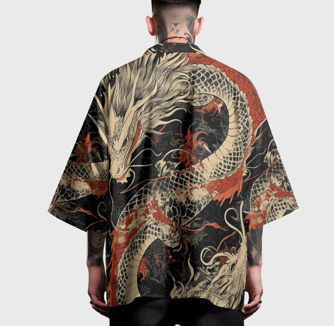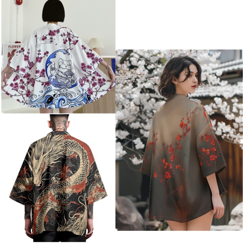Китайский стиль укиё-э японский кимоно плащ перо плетение одежды