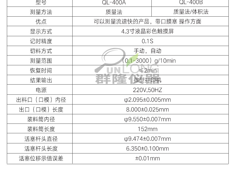 LSD-350A (качественный метод/модель кнопки); LSD-350B (качество/метод громкости/модель кнопки); LSD-400B (метод качества/модель сенсорного экрана); LSD-400A (качество/метод громкости/модель сенсорного экрана); LSD-450A (качественный метод/модель кнопки); LSD-450B (качество/метод громкости/модель кнопки); LSD-550A (метод качества/модель сенсорного экрана); LSD-550B (качество/метод громкости/модель сенсорного экрана; LSD-650A (метод качества/модель сенсорного экрана); LSD-650B (качество/метод громкости/модель сенсорного экрана); LSD-750A (метод качества/модель сенсорного экрана); LSD-750B (качество/метод громкости/модель сенсорного экрана); QL-MI-QP (механический тип); QL-MI-EP (полностью автоматическая модель); Форма для рта инструмента с индексом плавления