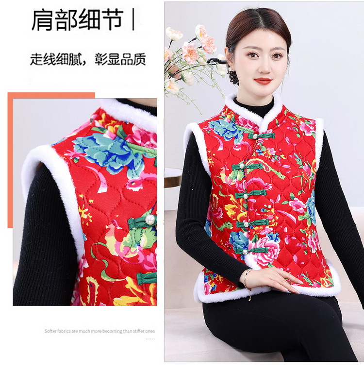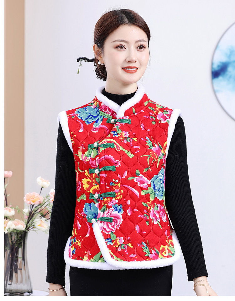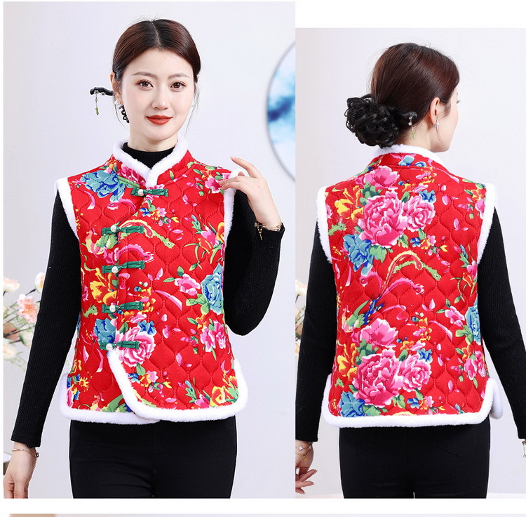 Новый жилет северо-восточный большой цветок этническая танская одежда конюшни хлопковая куртка утолщенные пуговицы и бархатные женские теплые жилеты