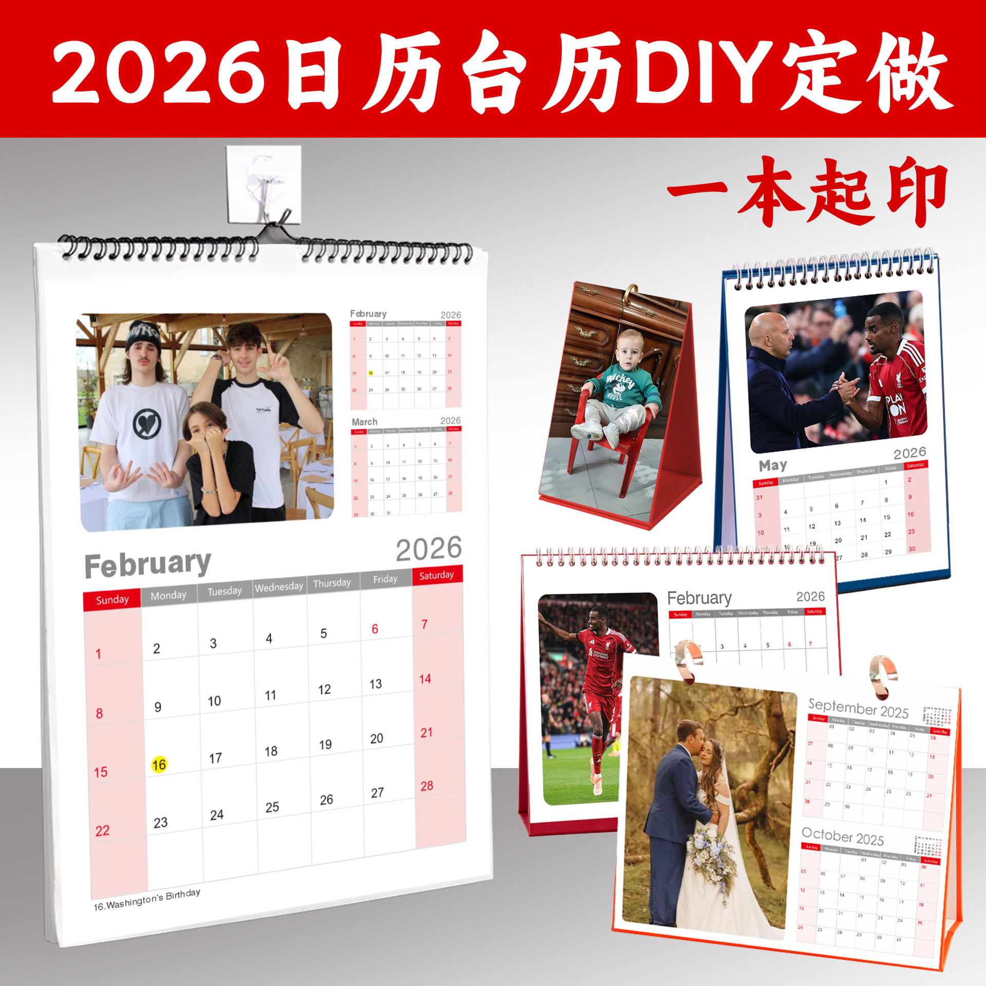 Календарь на 2026 год для домашнего использования, персонализированный фотокалендарь для детей и малышей, корпоративный DIY-календарь с семейным портретом, сделанный своими руками