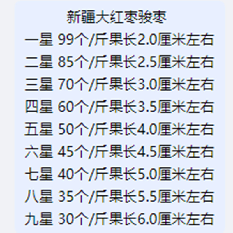 Сорт 5 Хэтяньский жужубе - оптом/фунт; Один пакет/фунт фиников Хэтянь пятого сорта; Смородина Хэтянь 4-го сорта - оптом/на вес; Сорт 4 Хэтяньский жужуб - Один пакет/фунт; Жужубы Хэтянь, сорт 3 - оптом/на вес; Один пакет/фунт фиников Хэтянь третьего сорта; Джуджуба Хэтянь второго сорта оптом/цзинь; Один мешок/фунт фиников второго сорта из Хэтиана; Первоклассный финик Хэтянь оптом/жин; Один пакет/фунт фиников высшего сорта из Хэтиана; Премиальные финики Хэтянь - оптом (за джин); Один пакет/фунт премиальных фиников Хэтиан; Супер специальный финик Хэтянь оптом/цзинь; Мешок супер-специального финика Хэтянь/цзинь; Семизвездочный горячий горный финик оптом/Цзинь; Семизвездочный Хэтяньский Жужубе - Один пакет/фунт; Восьмизвездочный Хэтяньский жужуб оптом/цзинь; Восьмизвездочный финик Хэтянь, один пакет/цзинь; Девятизвездочный мармелад Хотан оптом/джин; Мешок фиников Jiuxing Hetian/цзинь